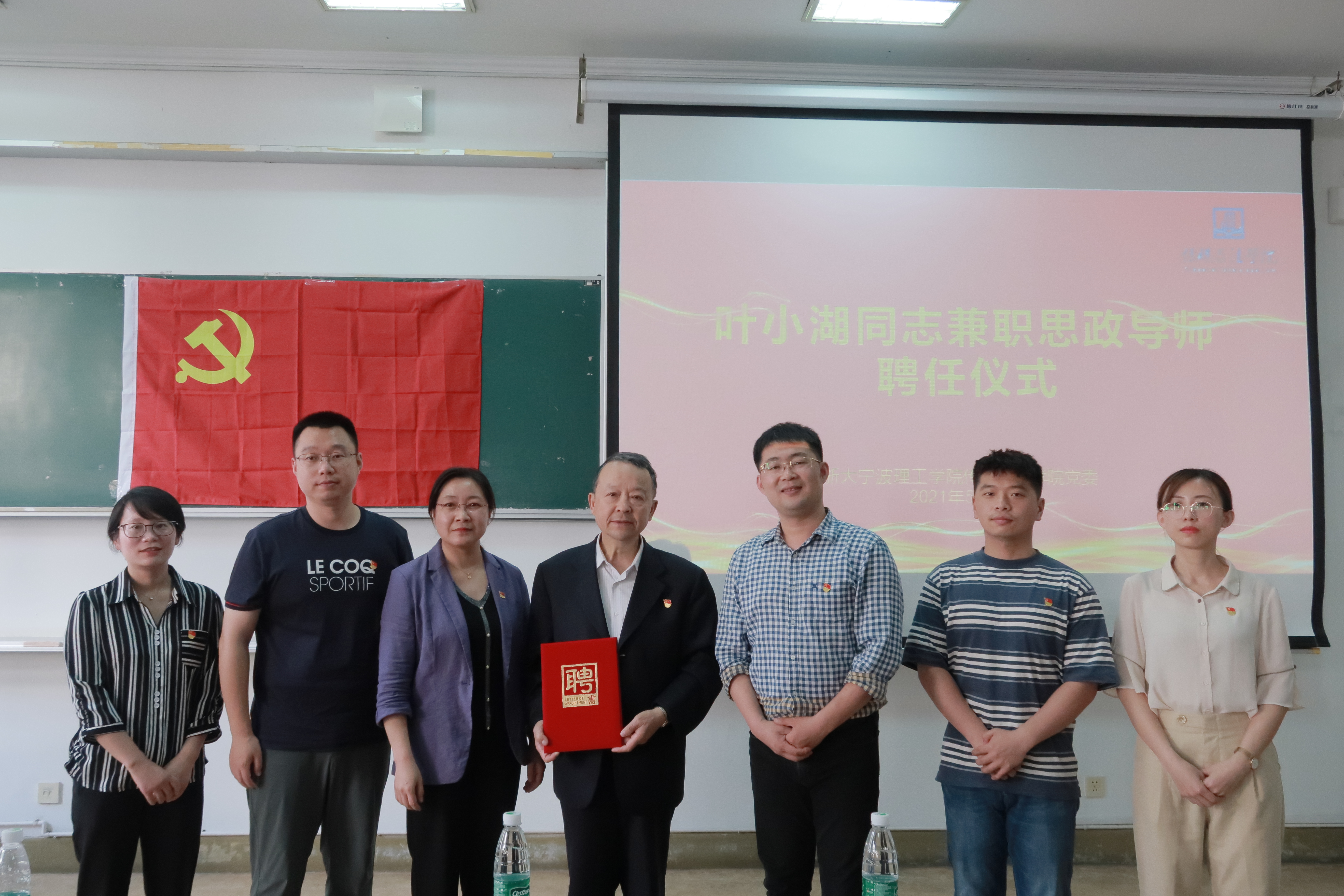 胡鹿鸣介绍叶小湖同志简历,朱小红宣读关于叶小湖同志兼职思政导师的聘任文件并颁发聘书。