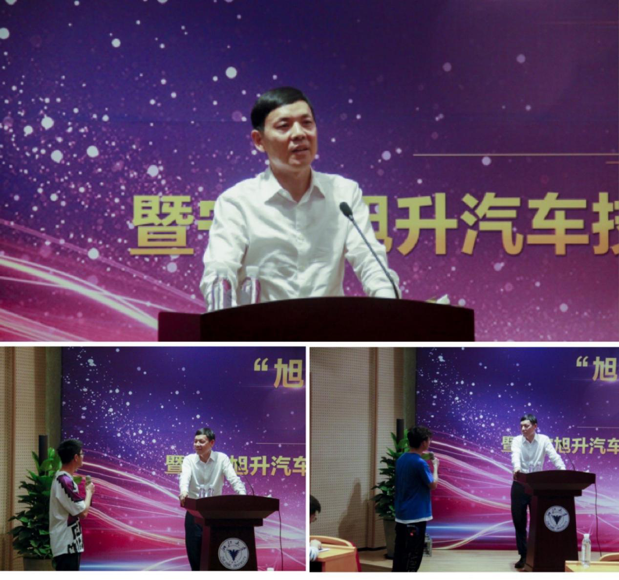 宁波旭升汽车技术股份有限公司创始人兼董事长徐旭东先生为同学们讲话。徐旭东先生围绕“坚持,超越,快乐,感恩”的企业核心价值观,用深入浅出、生动有趣的语言讲述了每个理念背后的故事和来源。徐旭东先生用自己丰富的人生经验和创业经验鼓励学生砥砺前行,全力以赴,再接再厉,将100分的事情做出120分的水准。报告结束后,同学们踊跃提问,徐旭东先生一一为学生解答。