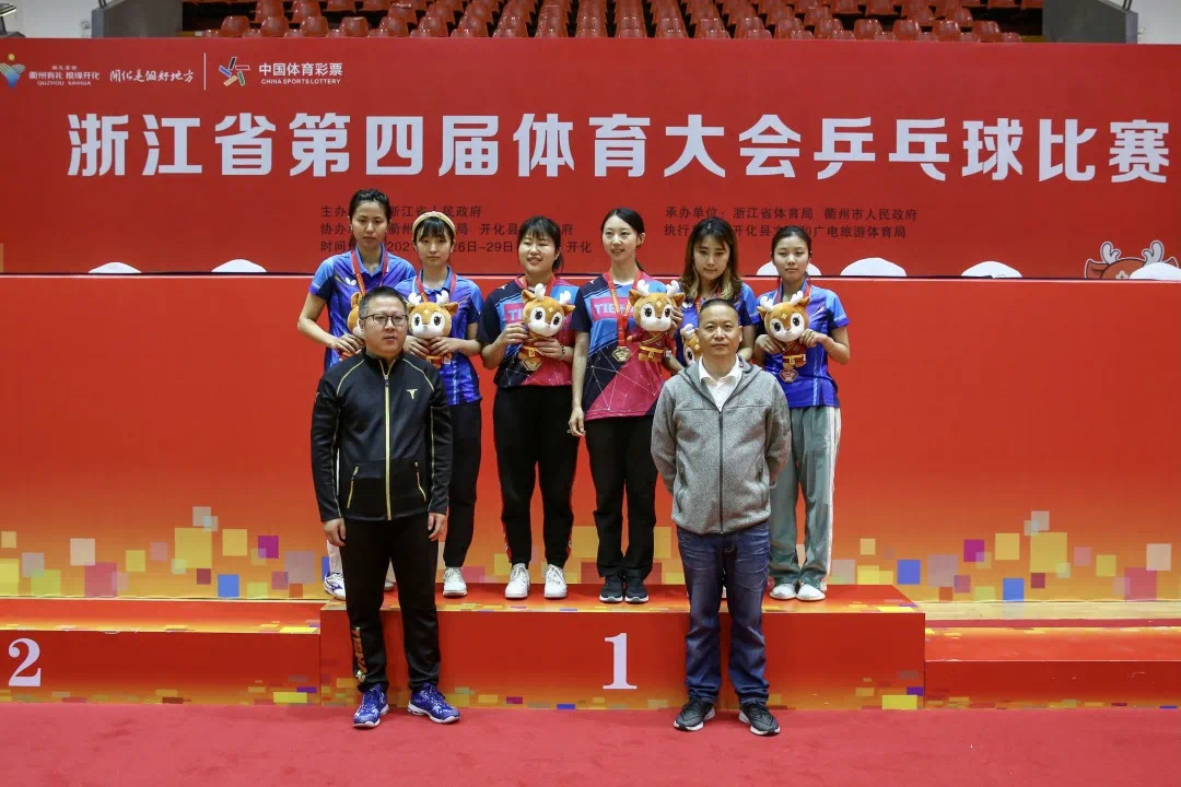 4月26日至29日,浙江省第四届体育大会乒乓球比赛在衢州市开化县举行。开云孙倩老师搭档宁大科院的张钰晨老师,在中青年组女子双打比赛中力压群雄,摘得桂冠。