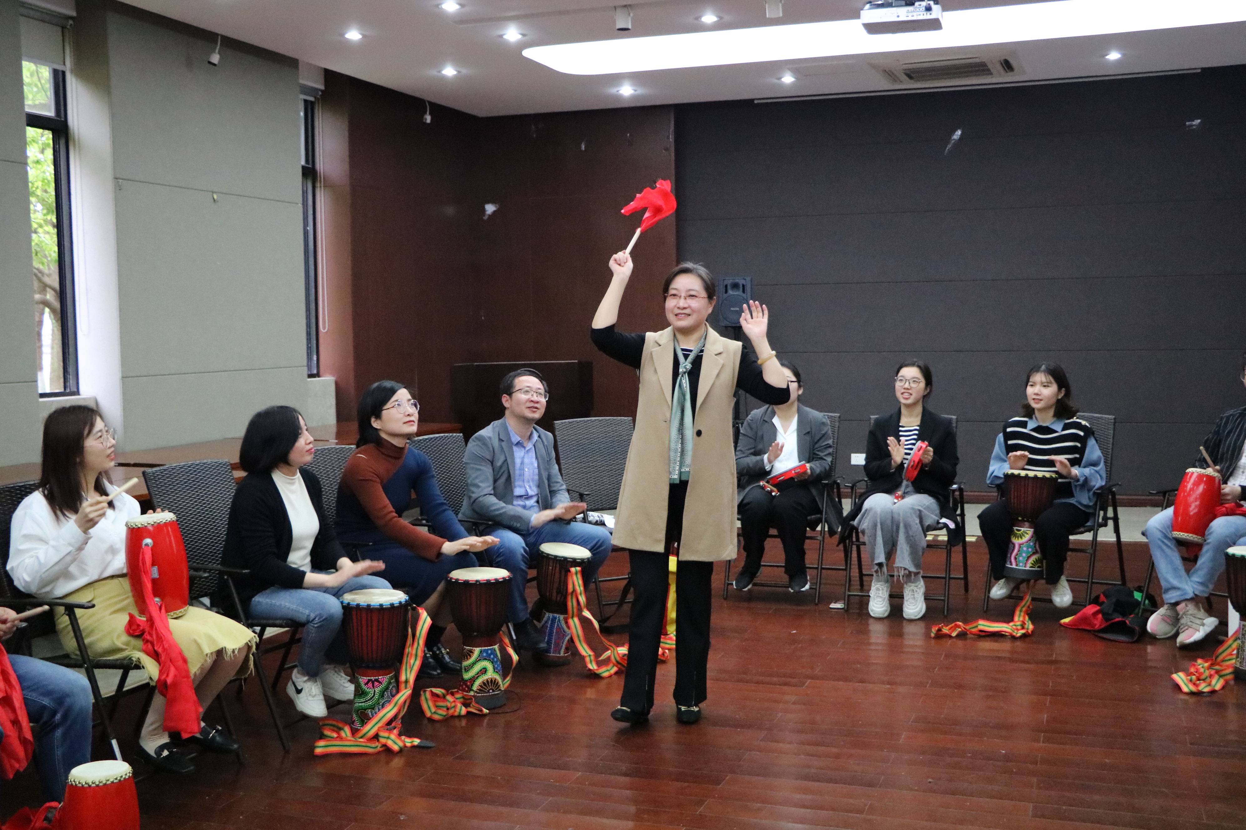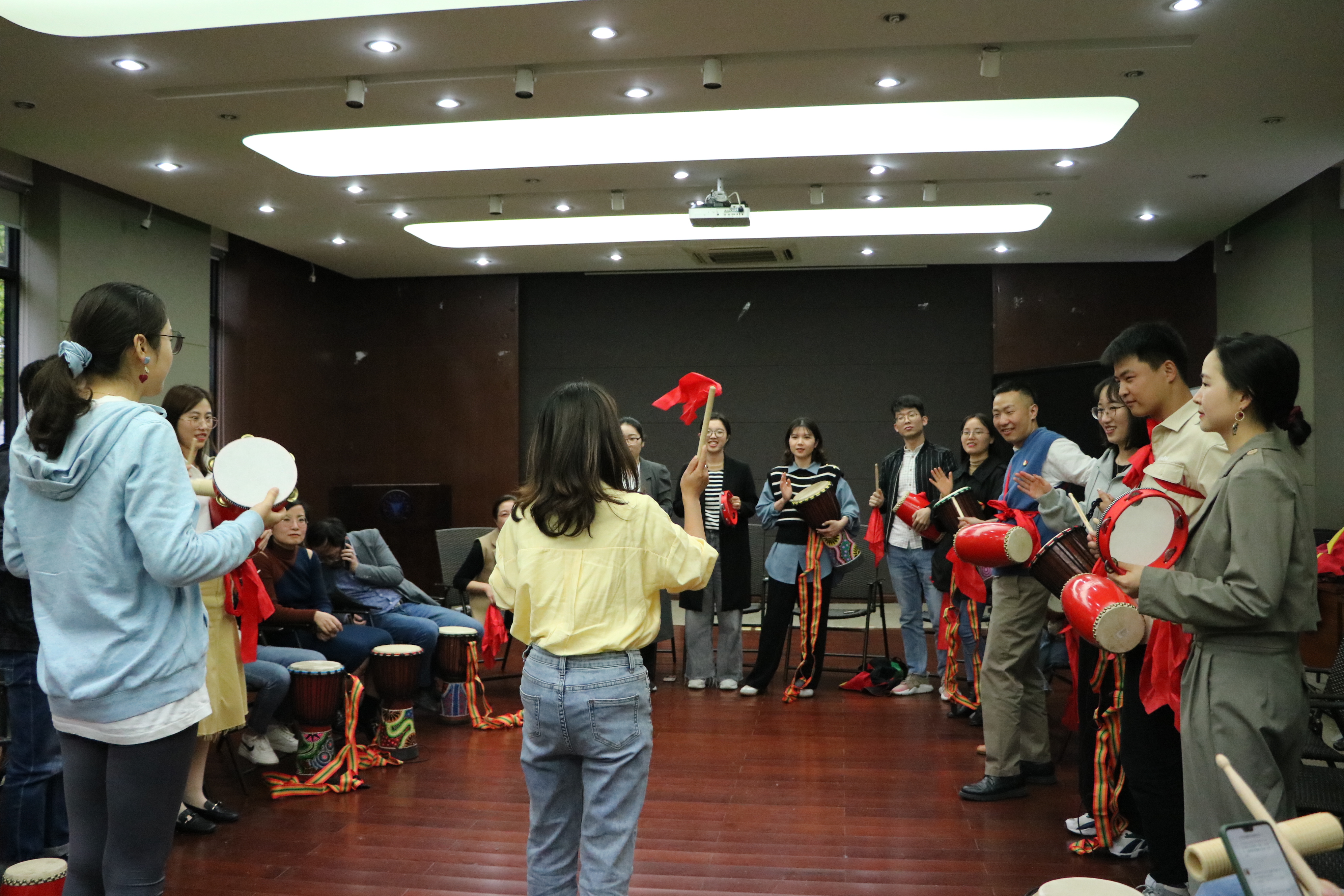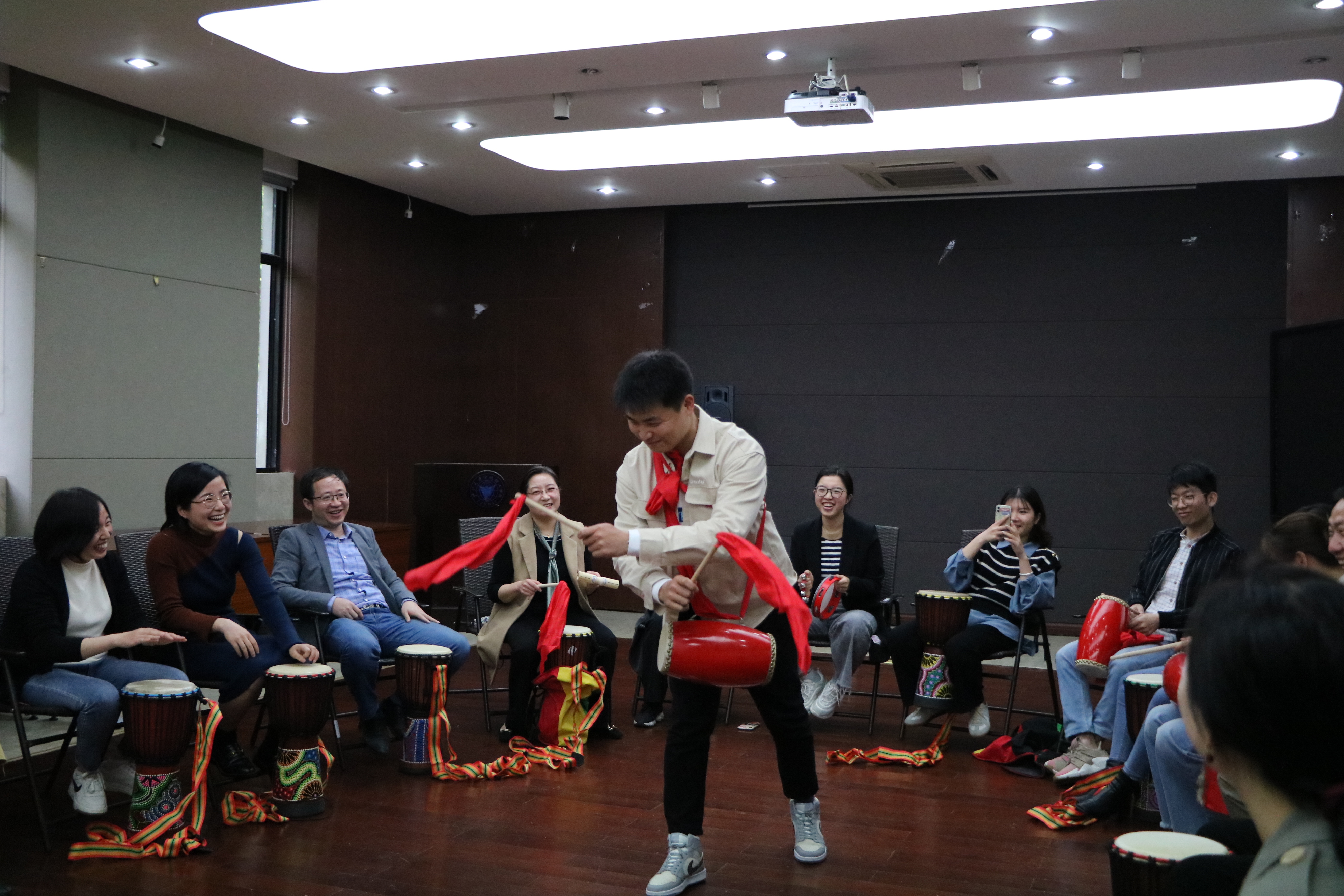 4月22日,SC101教室传来阵阵笑声和悦耳的鼓声,为释放辅导员的工作压力,进一步提升学工队伍的凝聚力,辅导员知行读书会开展“鼓圈”团体心理辅导活动。活动由传媒与法学院党委书记兼副院长朱小红带领,学校心理咨询中心、各学院辅导员二十余人参与本次活动。