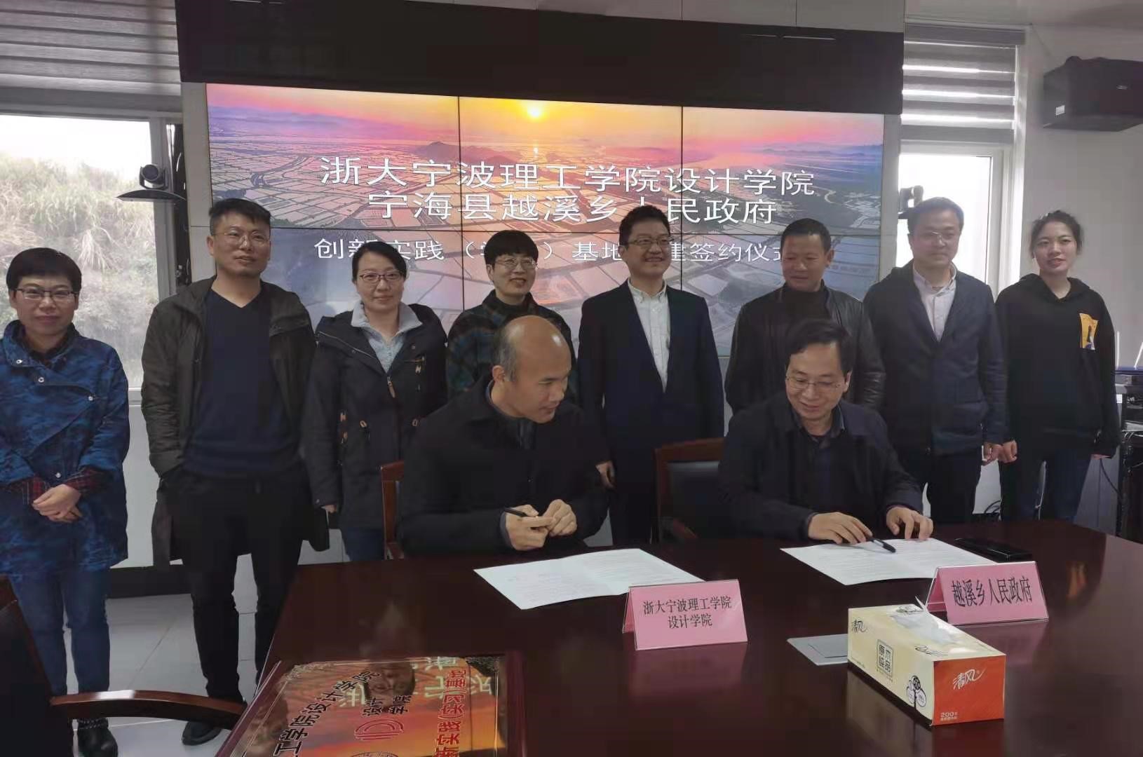 双方代表吴冰与叶卫树签订开云kaiyun官网设计学院--宁海县越溪乡人民政府共建教学与创新实践(实习)基地协议并授牌。