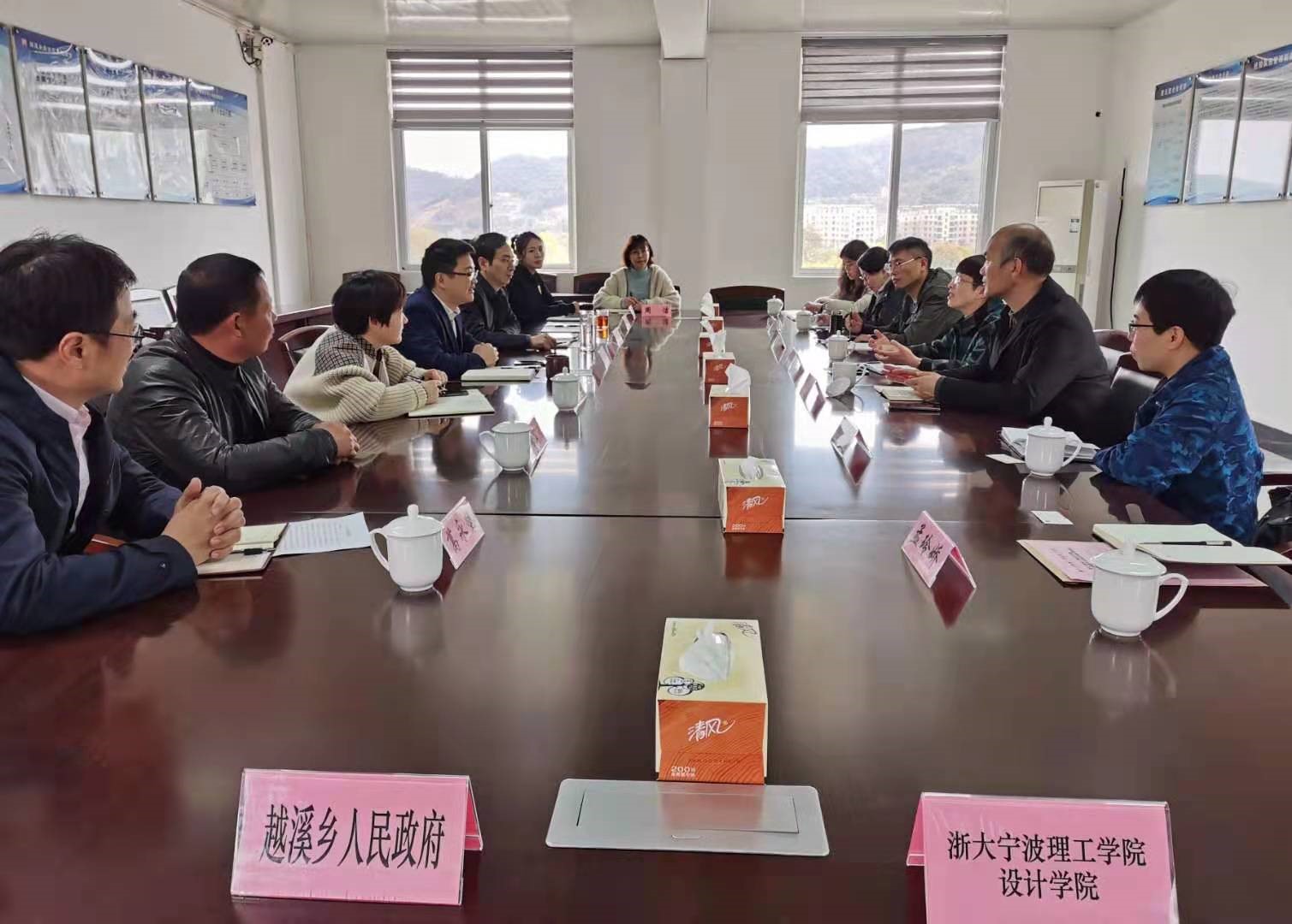为贯彻落实中共中央一号文件《中共中央 国务院关于全面推进乡村振兴加快农业农村现代化的意见》精神,发挥高校作用,助力乡村振兴, 3月24日下午,开云kaiyun官网设计学院党委书记吴春,党委副书记叶卫树,设计学院智慧人居环境设计系系副主任黄小华等教师代表一行6人赴宁海县越溪乡人民政府开展调研座谈。越溪乡党委书记钱贤丰等领导班子成员陪同接待。