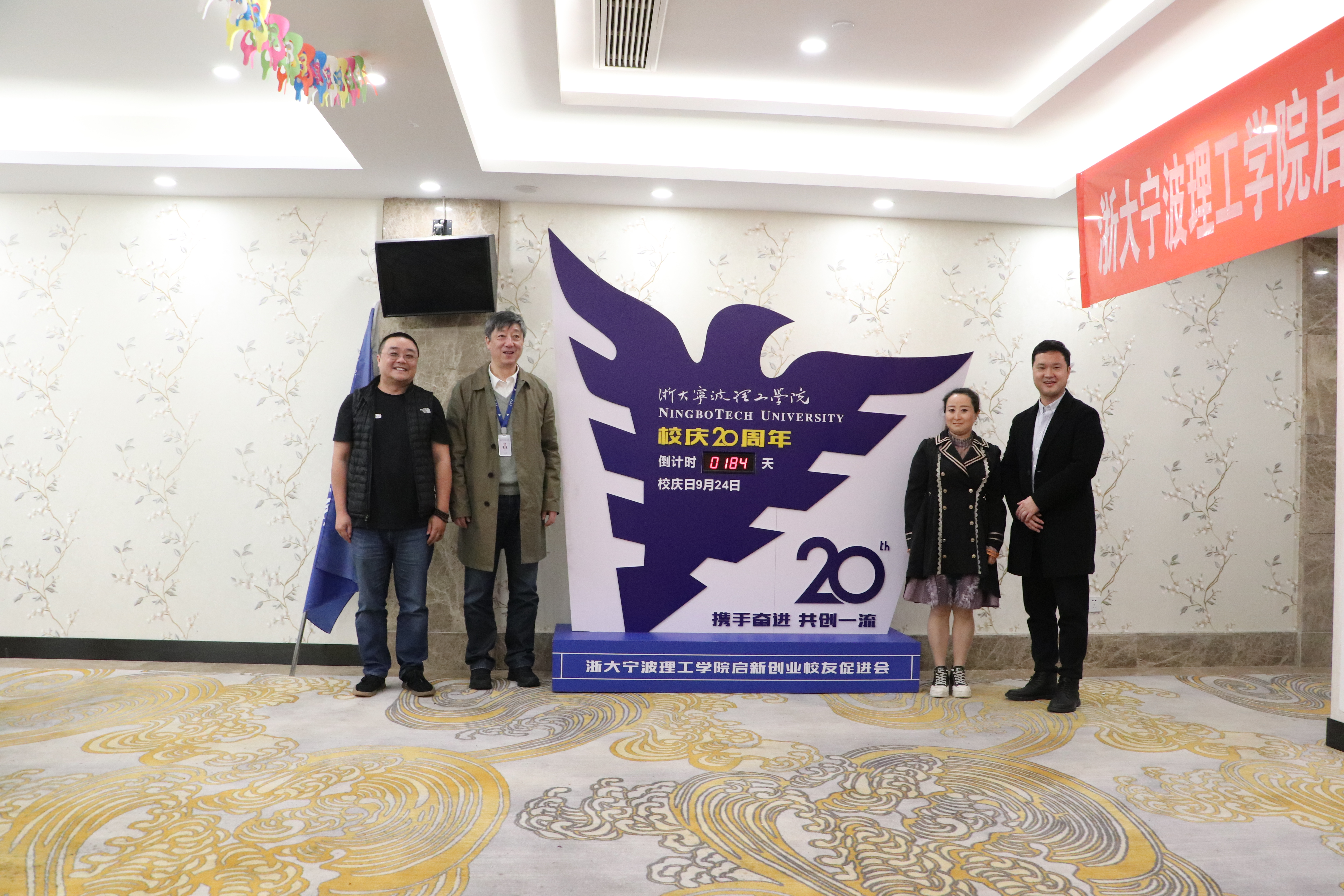 胡征宇与宁波、上海、杭州同城发展三地创业校友代表共同启动“携手奋进,共创一流”20周年校庆倒计时。