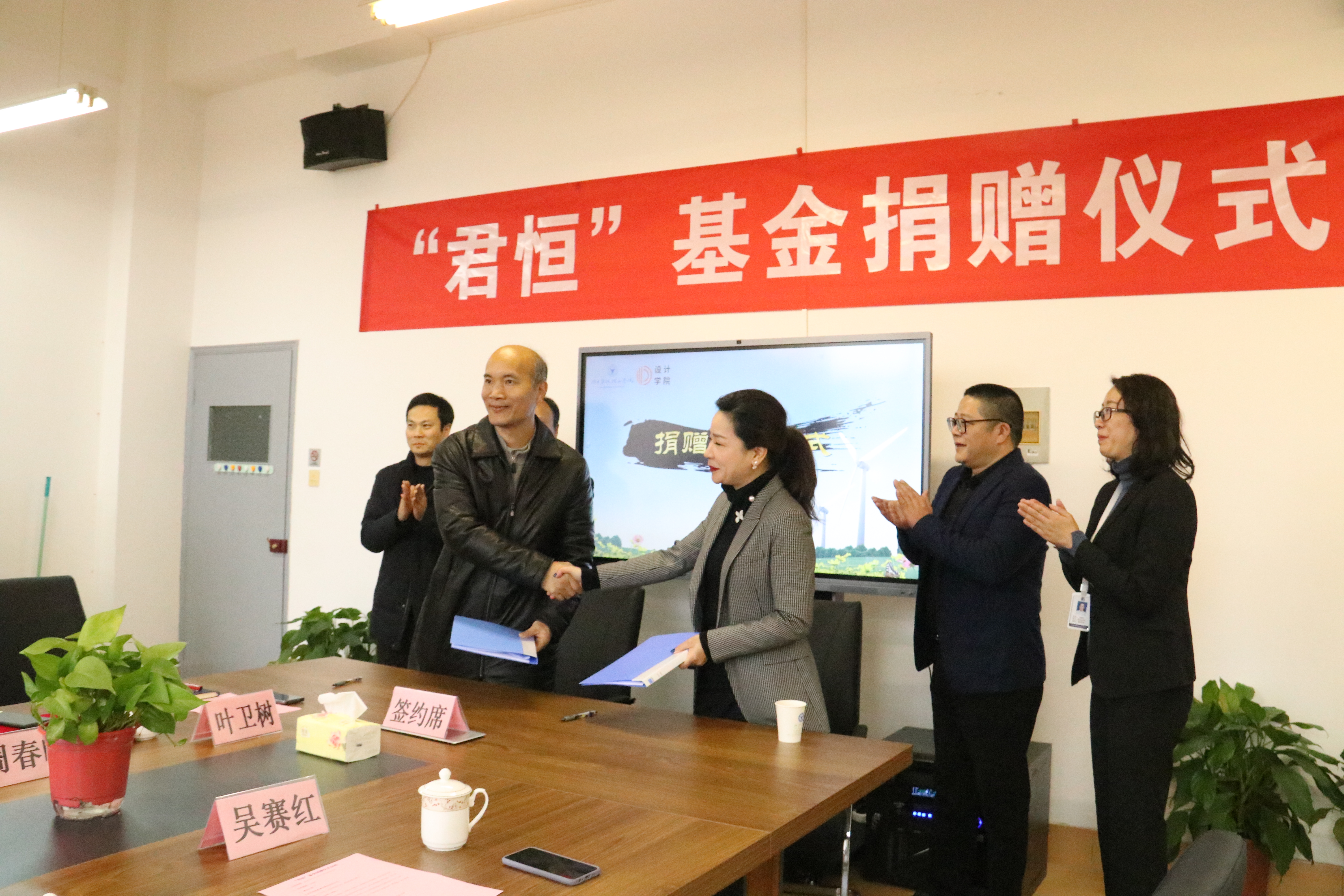 3月11日下午,设计学院在se306举行“君恒”基金捐赠仪式。宁波君恒智慧城市建设有限公司董事长王芳君,总经理周凤珠,副总经理吴赛红,学校党委副书记冯建波,相关部门负责人,设计学院师生代表出席仪式。捐赠仪式由设计学院党委书记吴春主持。