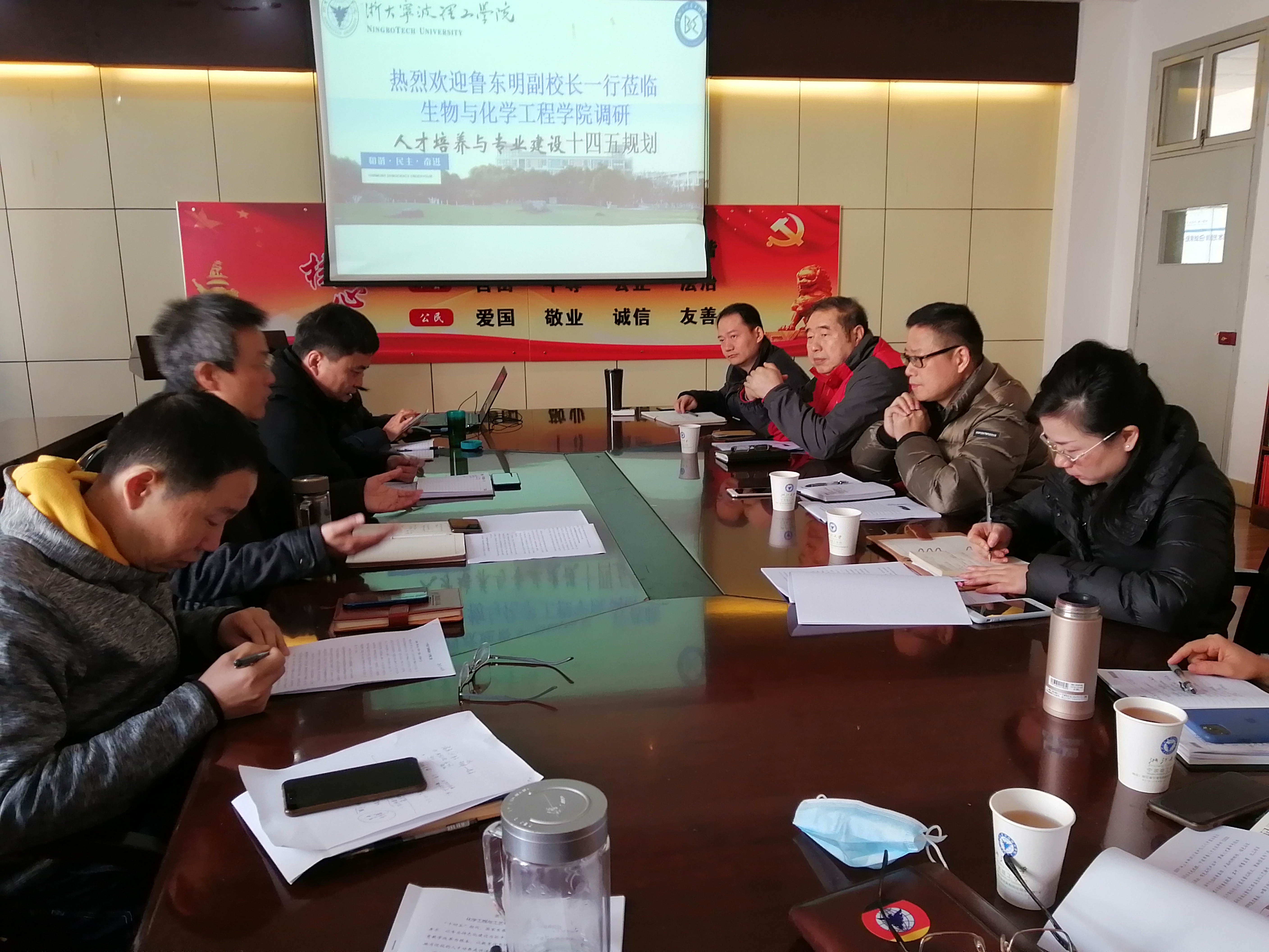 12月30日上午,副校长鲁东明、教务处处长潘再平、副处长沈波、江美芬、陈洁云,戴革萍赴生化学院调研指导人才培养与专业建设“十四五”规划与产业学院建设思路。生化学院党政班子、研究所所长、教学副所长参加了本次调研。调研活动由生化学院院长方征平主持。