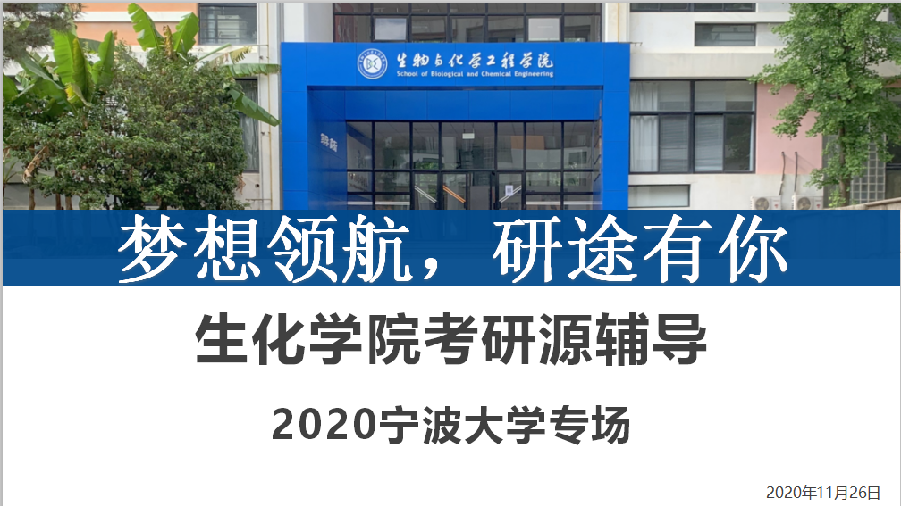 生化学院于11月26日成功举办了考研源辅导宁波大学专场活动。活动邀请到了中国科院宁波材料所的李昂老师,宁波大学材化学院韩磊教授、海洋学院研究生秘书邵娟老师以及生化学院助研团16届张畅学长。活动由生化学院辅导员董文举老师主持。