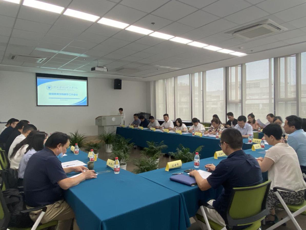 7月9日下午,继续教育学院教学工作会议在学术交流中心一号楼召开。继续教育学院副院长金朝晖、副院长贾小鹏、宁波经理学院副院长刘世峰出席会议,各办学合作单位的负责人、教务人员参加了会议,会议由贾小鹏主持。