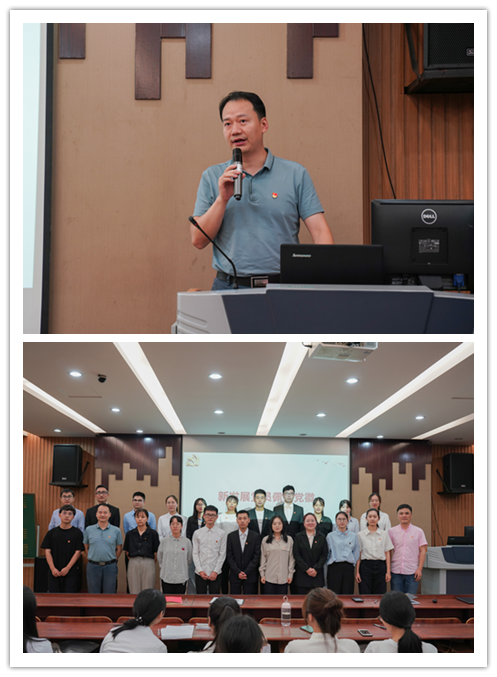 紧接着赵涵副书记宣读了本学期新发展的22名党员名单,由楼文军书记和赵涵副书记为新发展党员配发党徽。同时新发展党员进行了入党宣誓和老党员重温了入党誓词。