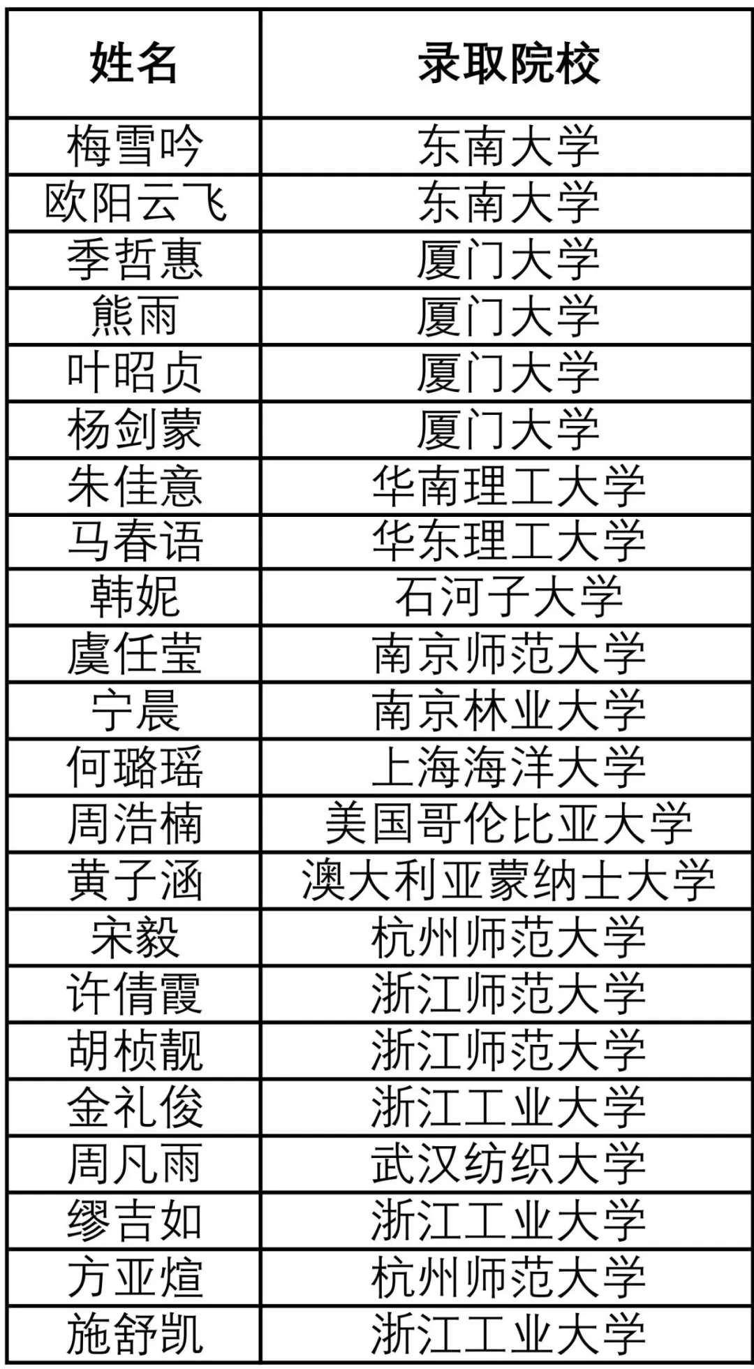 生工163班考研录取情况(排序不分先后)