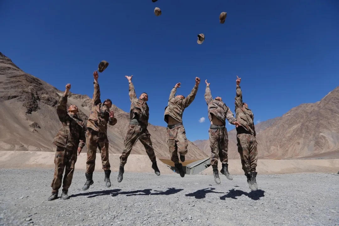 在喀喇昆仑山驻地,前方就是中印冲突的班公湖战场,薄金阳等战士就是在这里写下请战书。喀喇昆仑山,白昼酷热、夜寒下雪,战士们顶着高原反应搭设营地,构筑工事。“高原缺氧不缺精神”是薄金阳等战士在驻地听到的频率最高的一句话,凝聚着戍边战士在高原克服艰难保卫祖国疆土,守卫身后国人的喀喇昆仑精神。