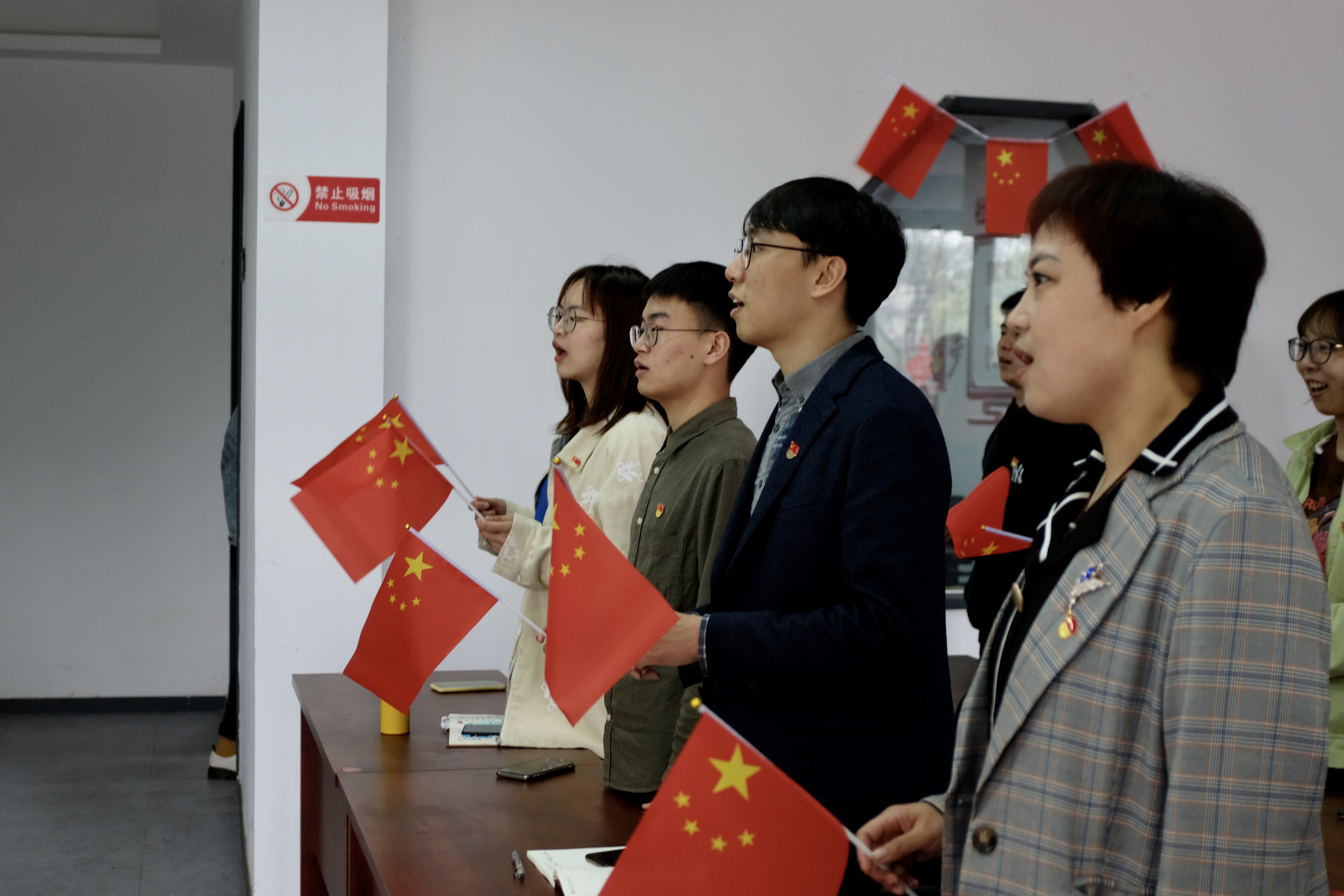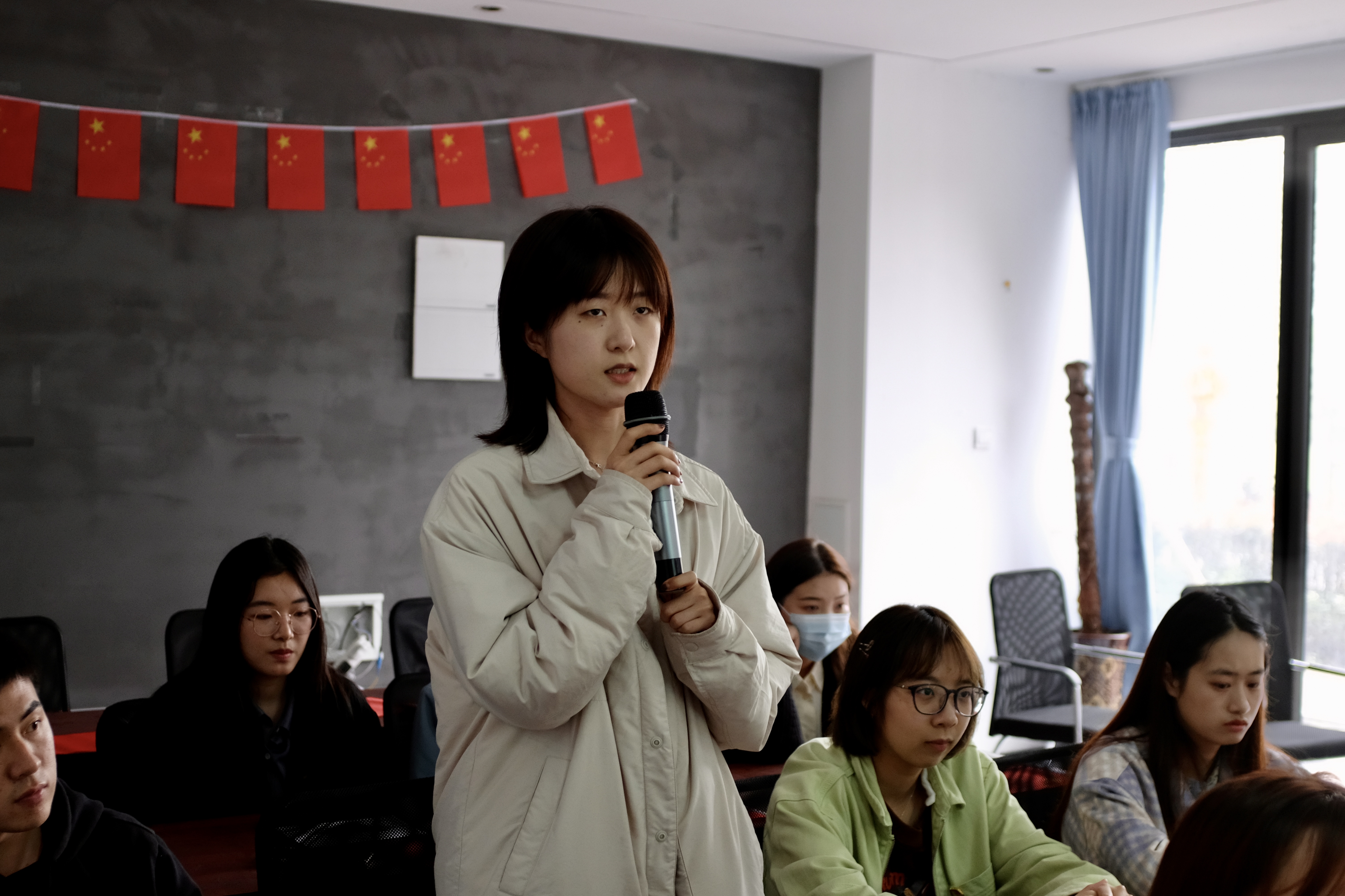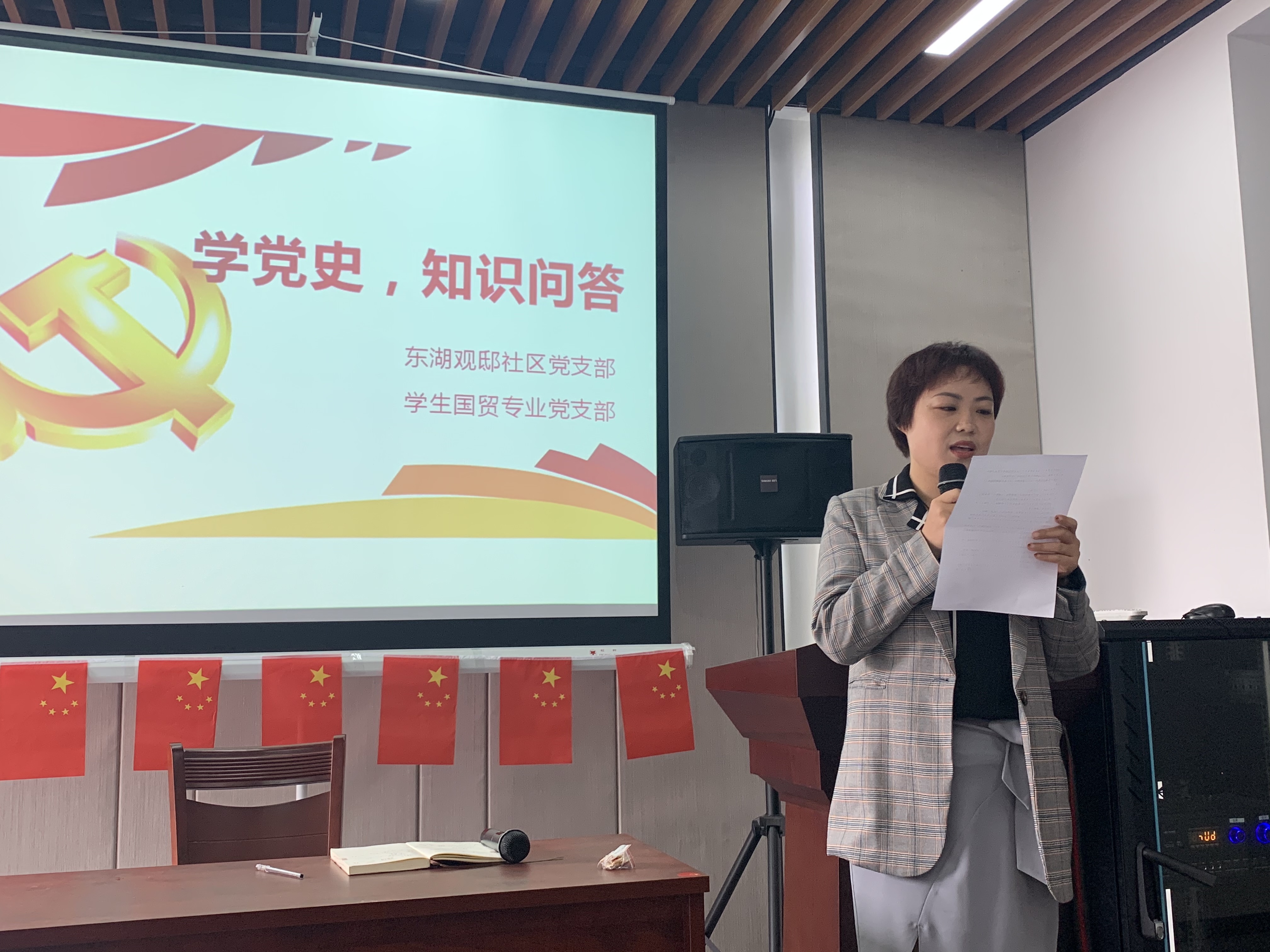 东湖观邸社区党支部支委围绕“学党史·忆初心”主题给学生党员们上了生动的一课,国贸学生党员们纷纷回顾中国共产党的百年征程,讲述自己入党的初心。在学党史知识问答环节,党员们主动举手抢答,现场气氛热烈。最后,全体成员起立,手举红旗共唱经典红歌《没有共产党就没有新中国》,在气势磅礴的歌声中结束本次活动。