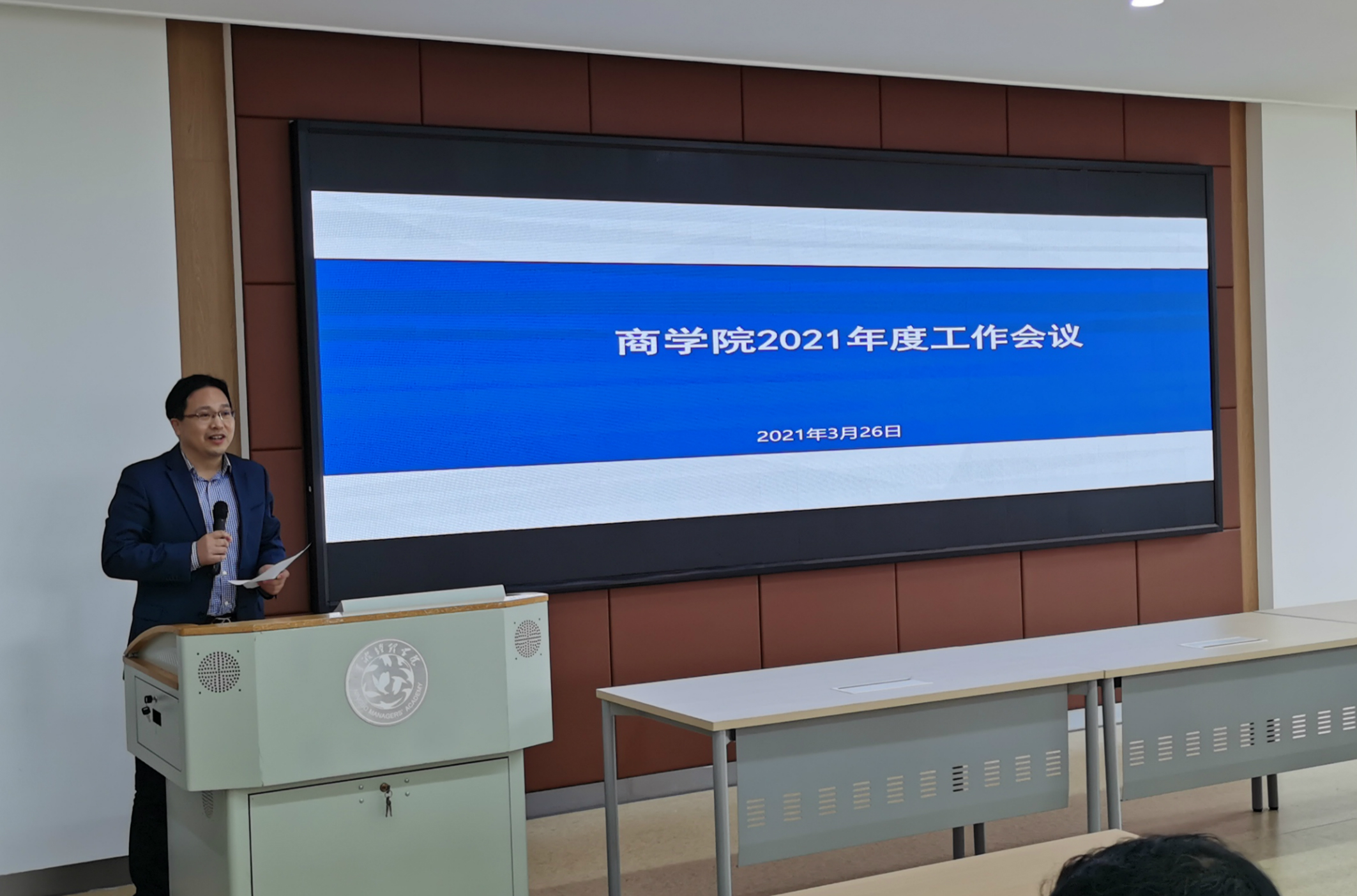 仲春时节,校园一派生机勃勃。3月26日下午,商学院举行2021年度工作部署会议暨“十四五”事业发展规划解读会,统一思想、凝聚共识、明确责任,确保“十四五”起好步、开好局。学院领导班子成员、各系务会成员、副高及以上职称教师、全体行政人员参加会议,会议由学院常务副院长林承亮主持。