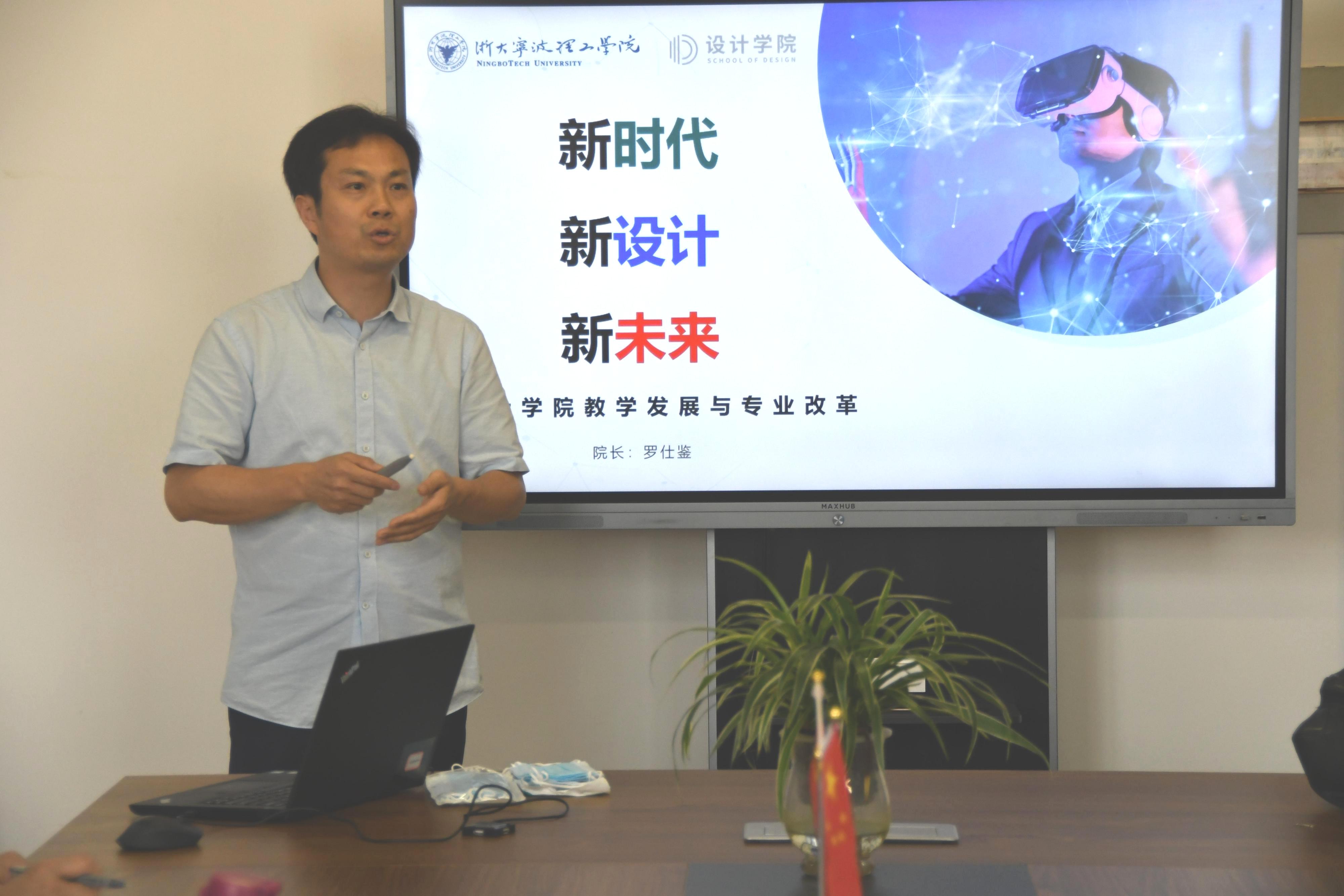 院长罗仕鉴首先作了《新时代新设计新未来》主题讲话。他立足新工业时代、新产业需求、新教育变革背景,回顾设计学院学科专业体系发展现状,对比与国内外先进院校的差距,围绕新设计专业、新设计课程、新设计特色提出设计学院下一步发展思路和改革路径,呼吁学院广大教师奋力投入新竞争蓝海,创造新教学成果,树立新改革标杆,打造全国有影响力的设计学院。