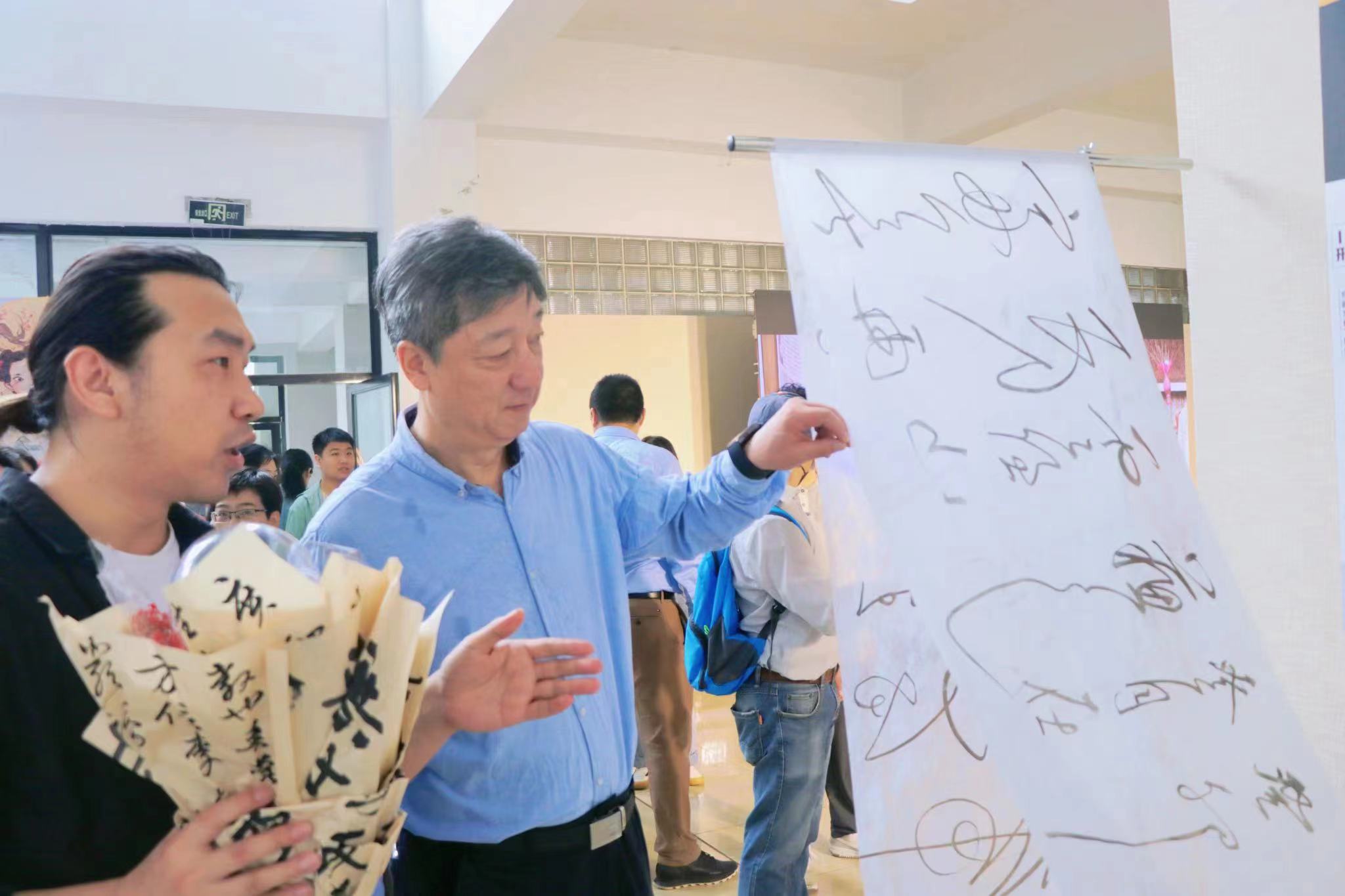 学校党委书记胡征宇莅临参观,他逐一听取了专业指导老师和同学们的作品介绍,并对本次毕业设计展的多维呈展形式、设计成果落地情况给予了高度评价。在参观末尾,胡征宇拿起学生的成果册,与学生毕设作品合影,为设计学子“带货”。