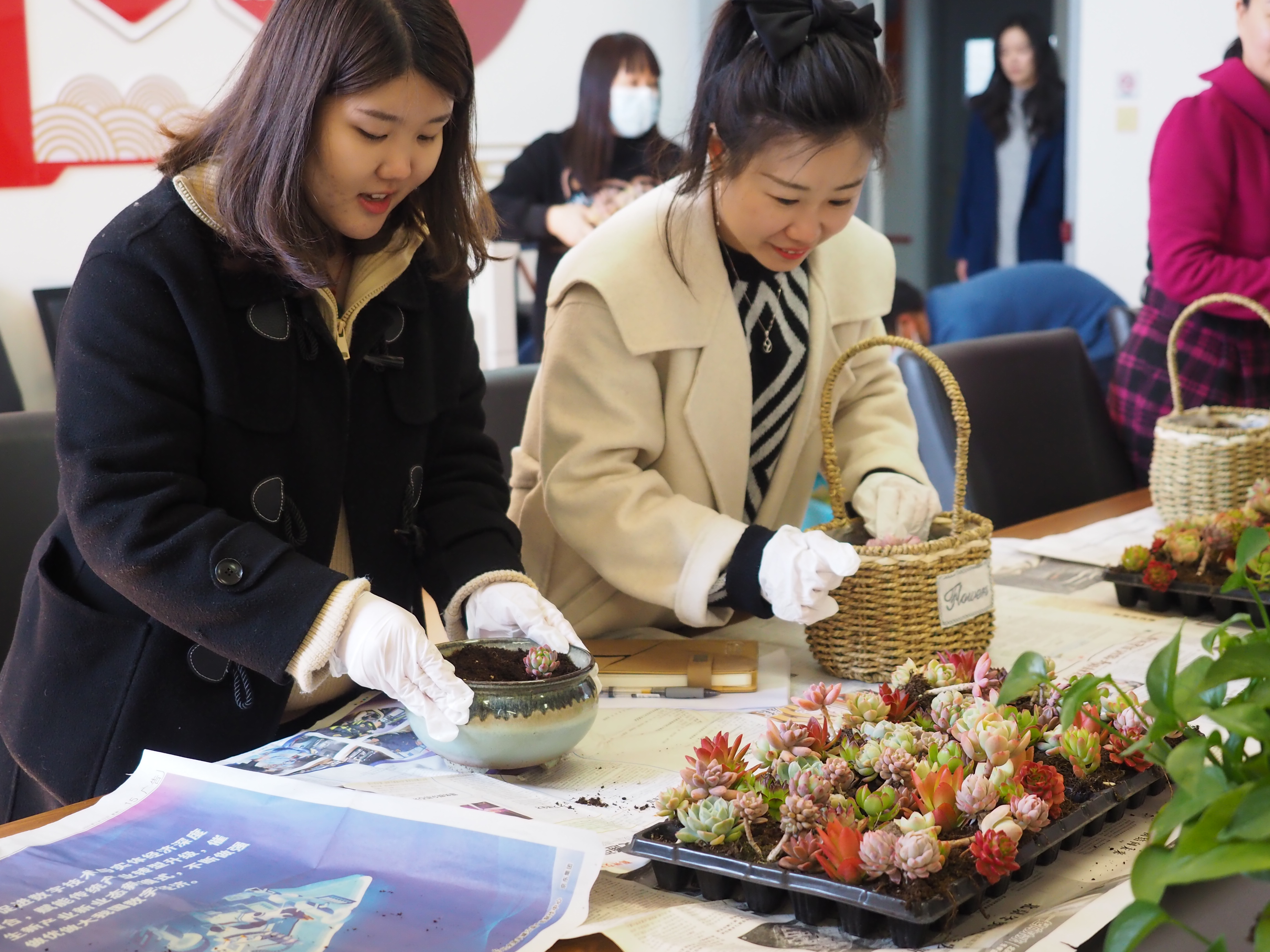设计学院举行“喜迎女神节,制多肉盆栽”活动