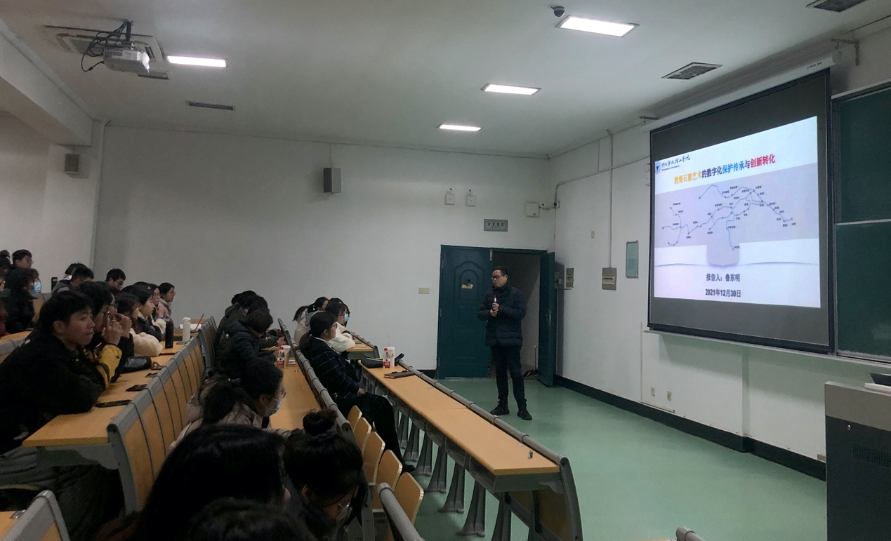 12月30日18:30分,鲁东明副校长受邀来到全校公选课——《敦煌莫高窟艺术欣赏》课堂,为学生们带来一场题为“敦煌石窟艺术的数字化保护传承与创新转化“的讲座,120余名学生有幸聆听了此次讲座,现场气氛热烈、互动活跃。