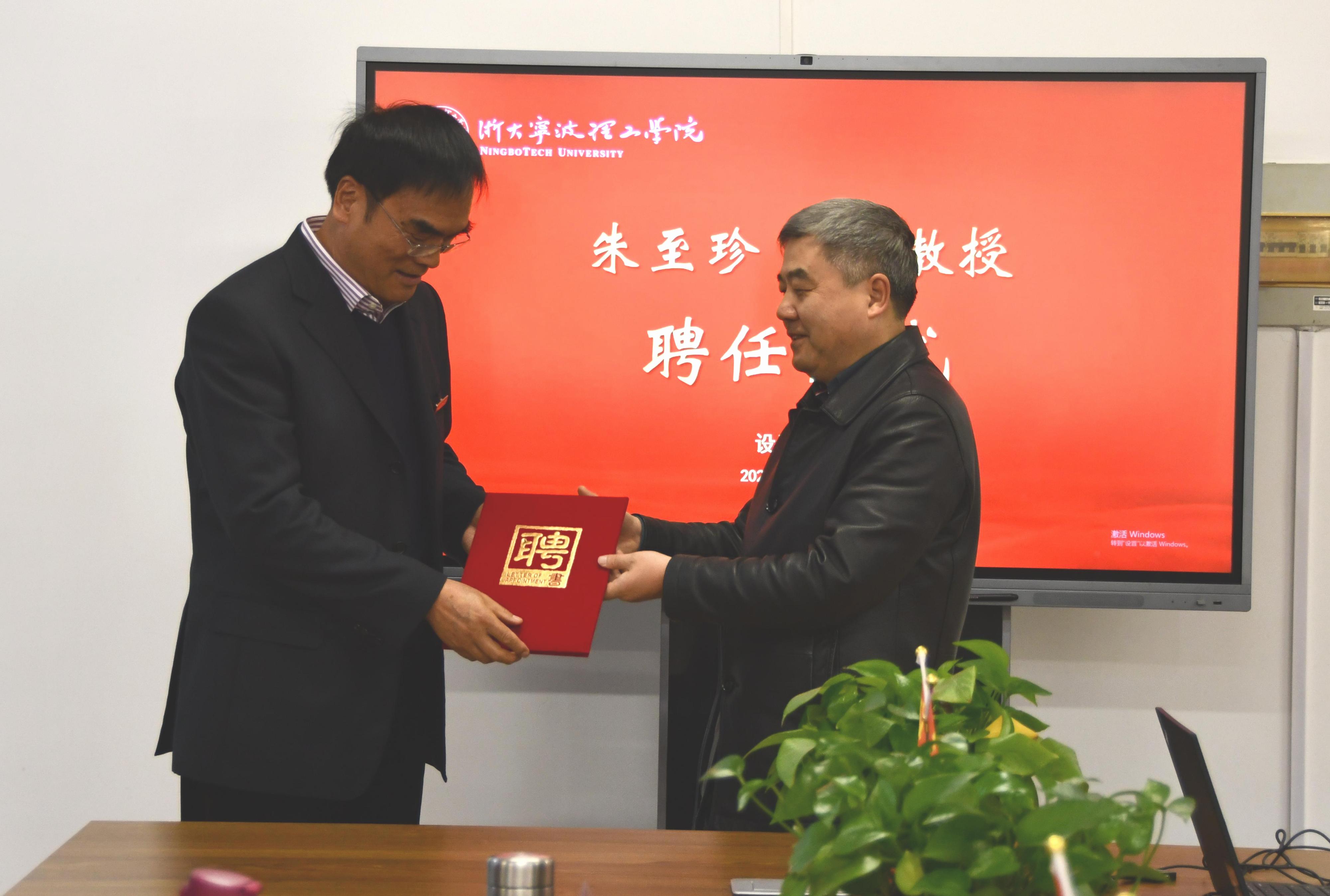12月23日下午,朱至珍兼职教授聘任仪式在设计学院SE306会议室举行。学校副校长章献民、人事处处长王高合出席聘任仪式,仪式由设计学院院长罗仕鉴主持。