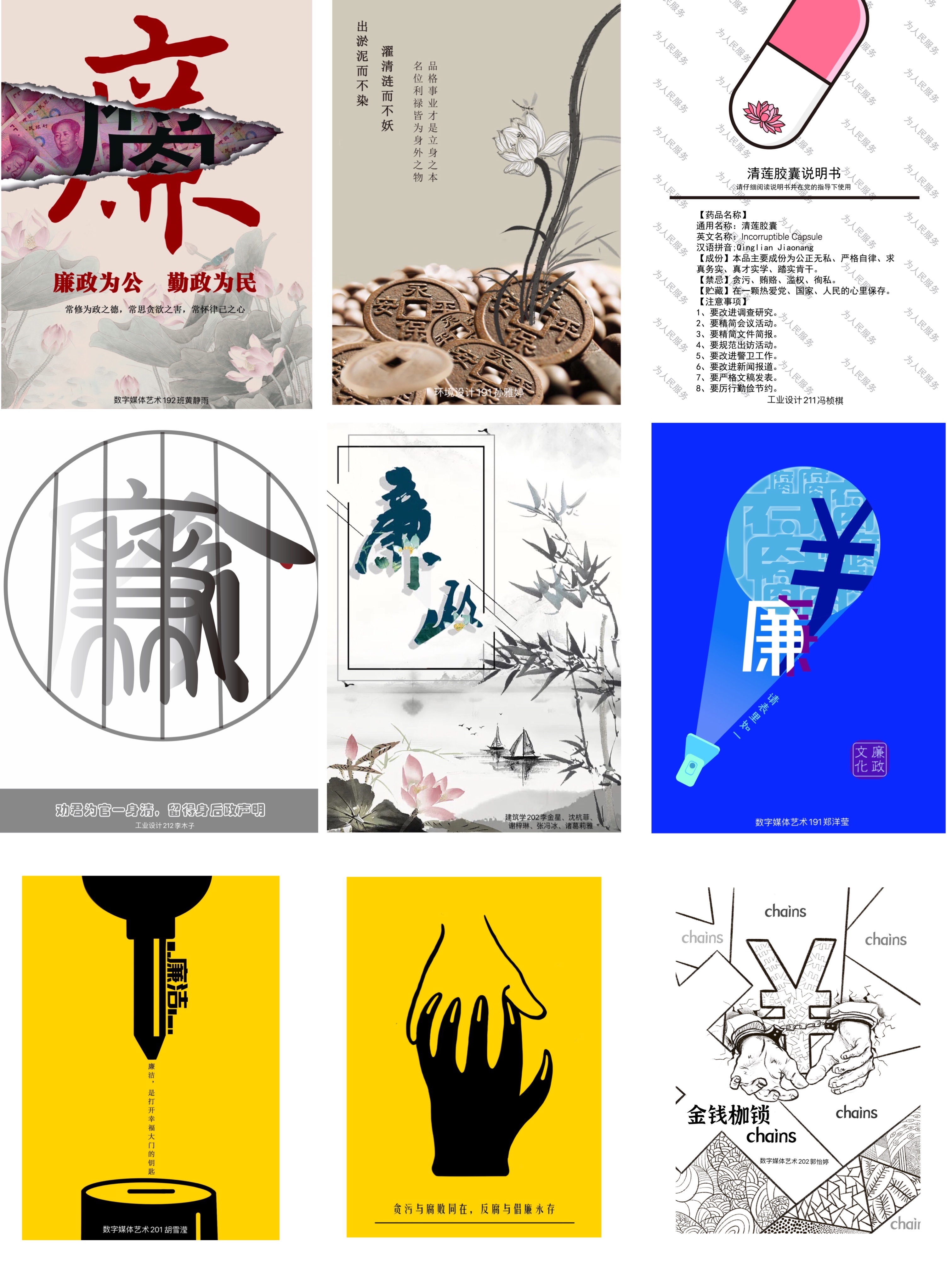 此次廉政海报设计大赛是设计学院廉洁文化建设工作开展的特色载体,设计学院始终以“清廉清正”为目标,宣扬廉洁文化,积极营造正气浩然、清廉文明、和谐发展的校园廉洁氛围。