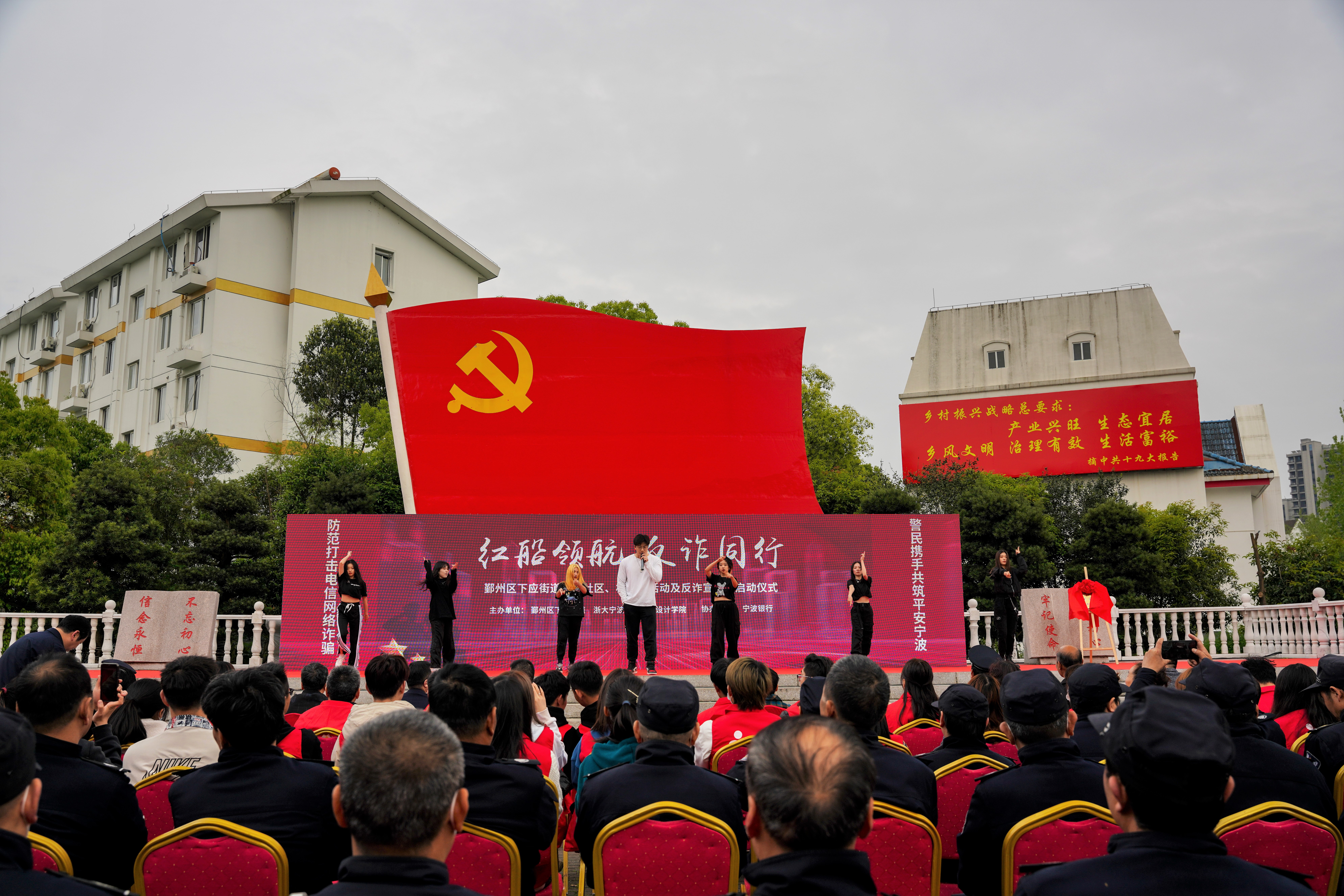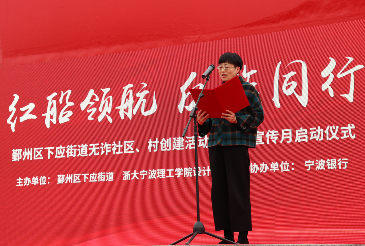 4月15日下午,“红船领航 反诈同行”鄞州区下应街道无诈社区创建活动及反诈宣传月启动仪式隆重举行。该活动由鄞州区下应街道联合开云kaiyun官网设计学院、宁波银行共同举办,旨在联合多方力量在辖区内深入推进宣传防控工作。鄞州区副区长、区公安分局党委书记、局长陆朝晖,下应街道党工委书记李静、开云kaiyun官网设计学院党委书记吴春、党委副书记叶卫树、宁波银行总行消保部总经理助理管文、鄞州区政法委副书记张民以及下应街道相关负责人出席,各社区、村、校方党员志愿者代表等共计200余人参加了此次活动。