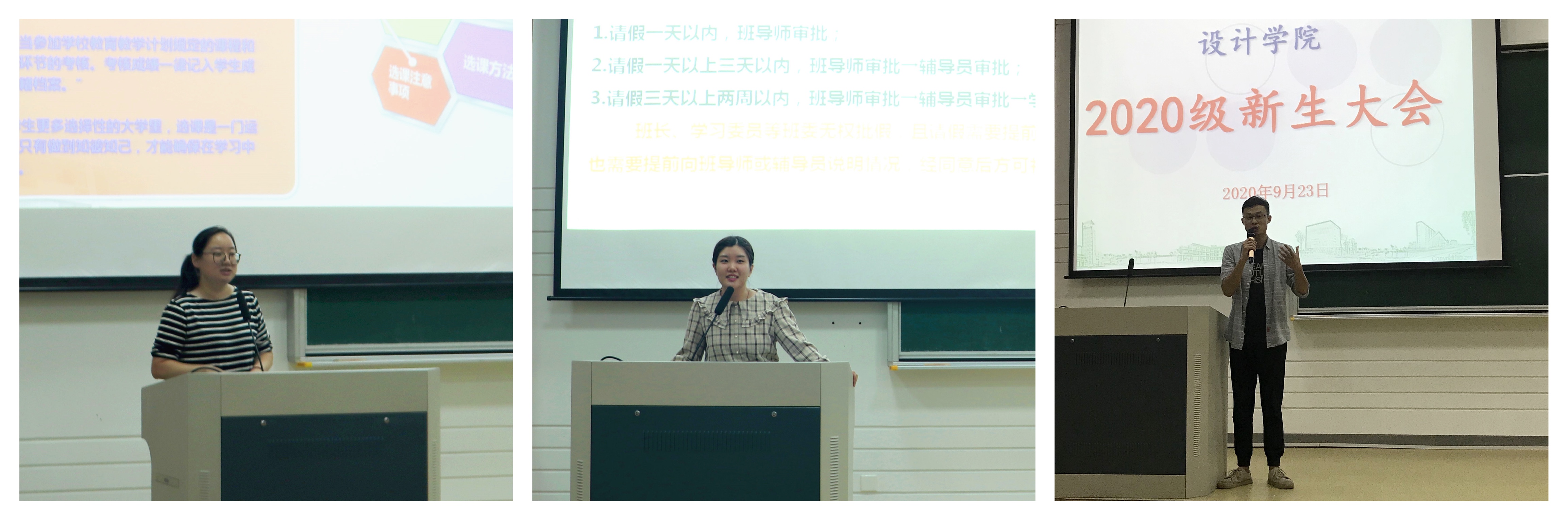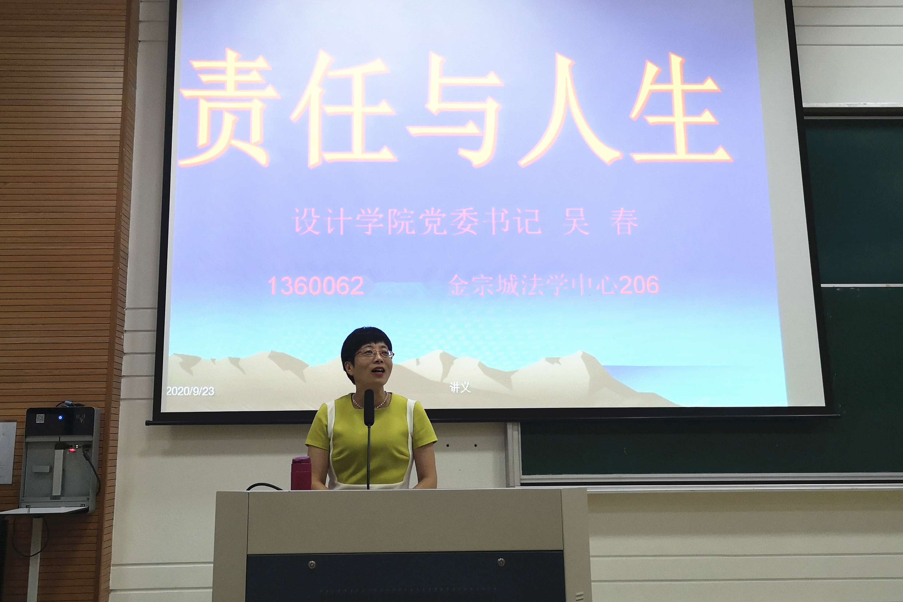 9月23日晚,设计学院在SB102举行2020级新生大会。学院党委书记吴春为全体新生开讲“开学第一课”——《责任与人生》,学院教务办、学工办老师分别为新生讲解学籍管理实施细则、学生管理规章制度与安全防诈骗教育。会议由思政主管邬旭东主持。