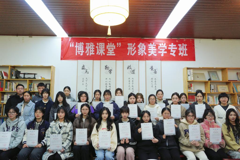在结业仪式上,宣传部部长李炜总结道,开展博雅课堂旨在引导大学生形成“博文约礼、雅人深致”的价值追求,促进青年学生自觉成为中国优秀文化的传承人、践行者。通过本期形象美学专班,希望同学们在追求“外在美”的同时,注重“内在美”的培养,将“养眼”与“润心”结合,内外兼修,将对美的追求融入大美之心、落于大美之行。