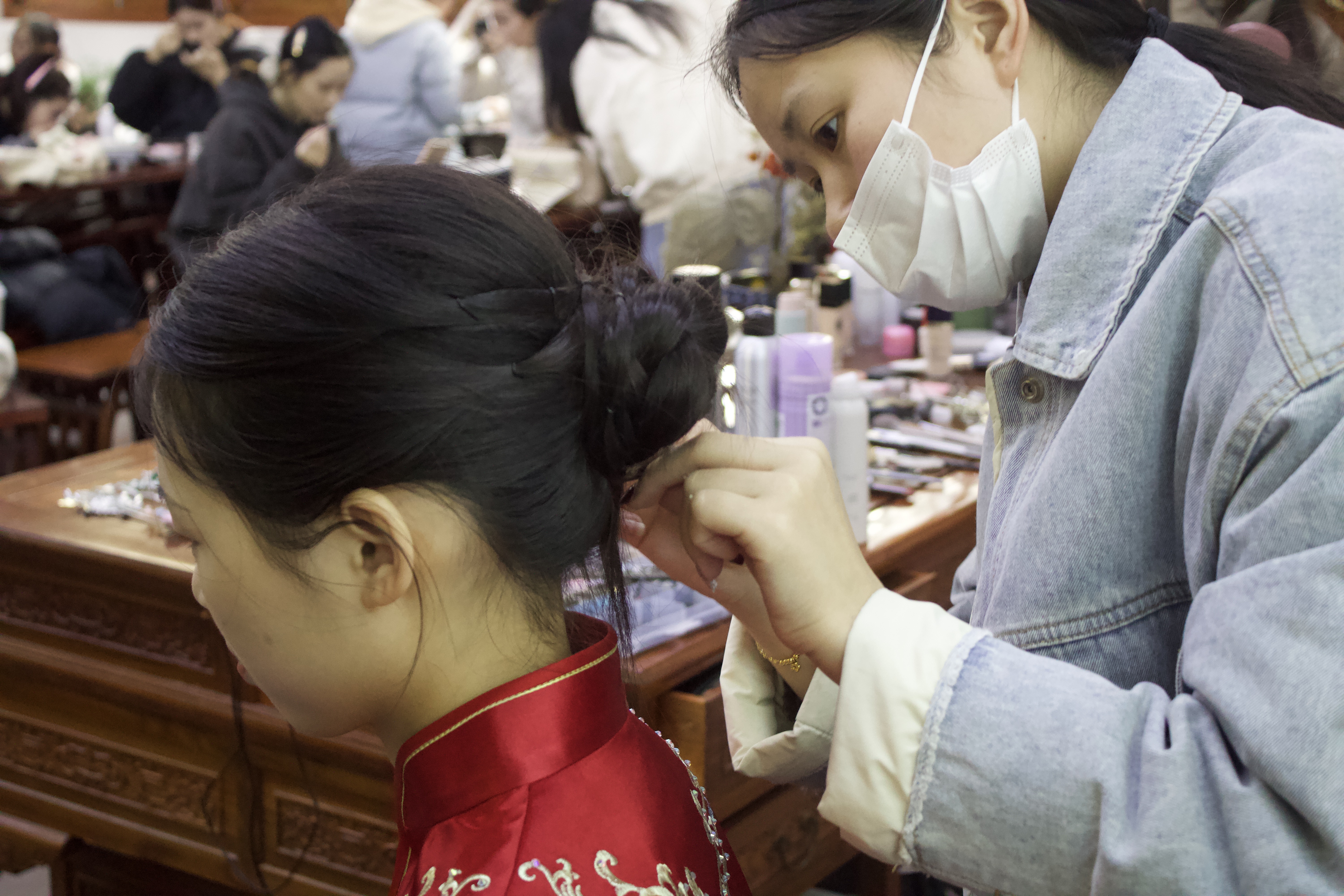 本期形象美学专班围绕“化妆风格审美认知”、“生活妆要点指导与体验”、“古典妆容认识与体验”、“古典盘发认识与体验”、“职业妆要点指导与体验”五个主题展开。希美造型工作室创始人、鲸宝集团合作化妆师姚叶青女士为26名博雅课堂学员带来了为期2天的形象美学讲座,通过理论讲解、现场演示、实践体验,指导各位学员求职面试妆、日常妆及整体形象设计等实用化妆技巧,提高大学生发现美、传承美、创造美、展现美的能力,加强学生对传统美、健康美的认知。