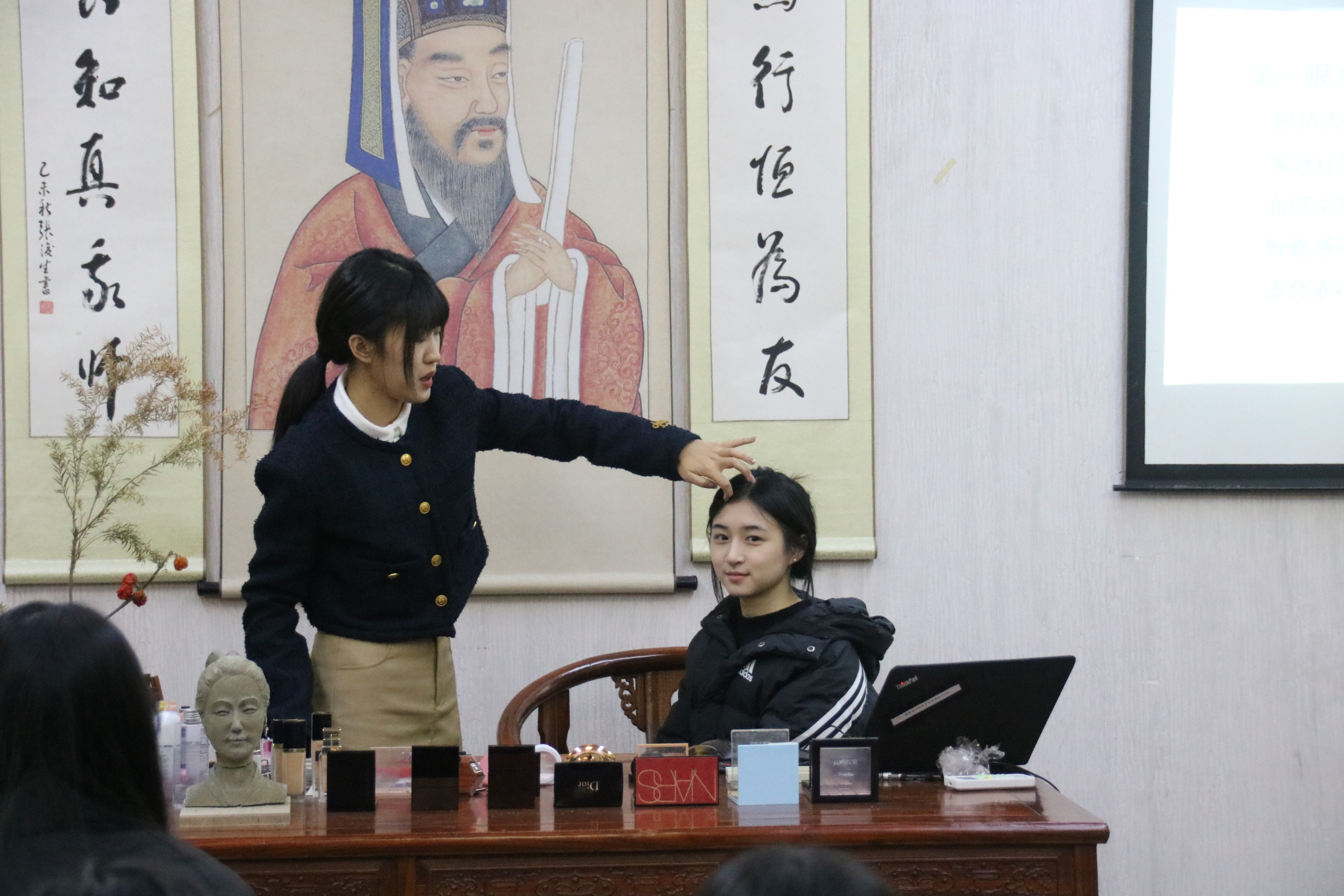 化妆是一门专业技术,更是一种礼仪和修养。3月17日下午,拿“美”说事、教人“美起来”的“博雅课堂”形象美学专班在阳明学堂正式开讲。活动由团委、教务处、宣传部、招就处、外语学院联合建设,宣传部、招就处负责人及外语学院相关老师参加。