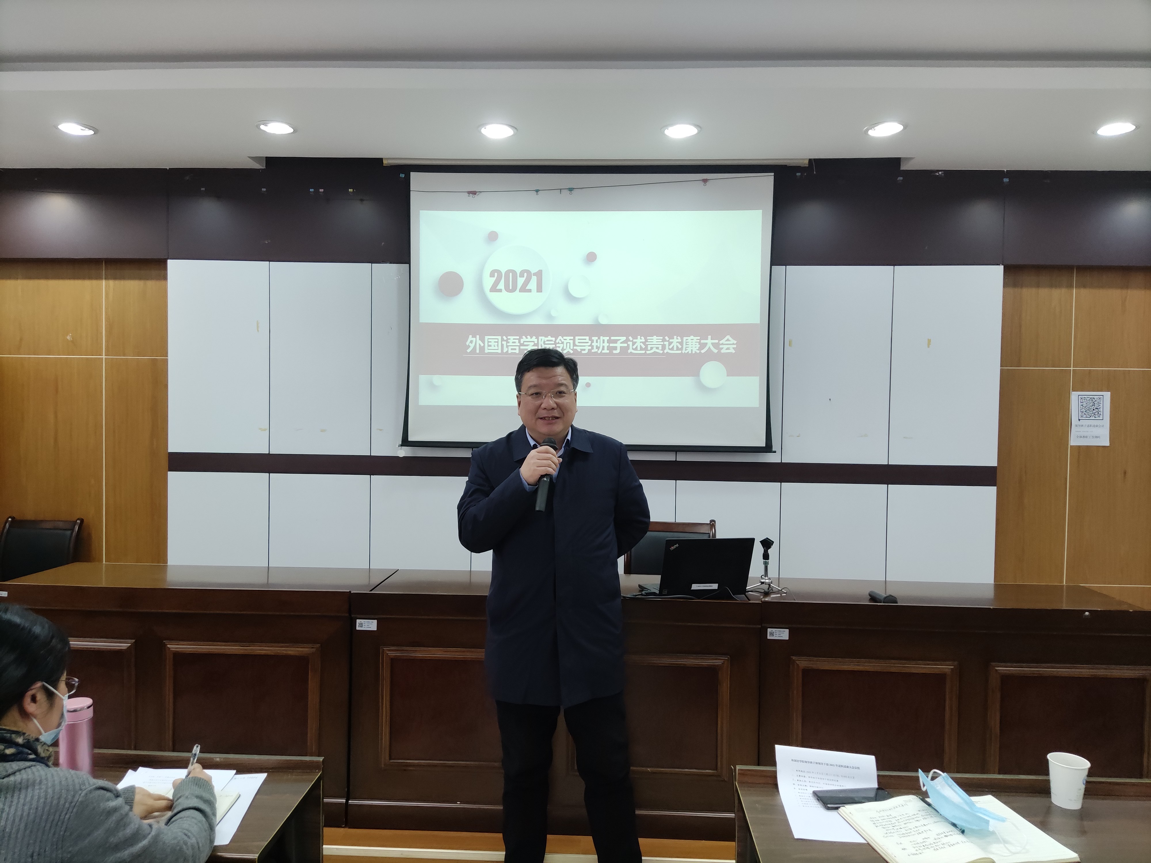 1月5日下午,外国语学院在SC405会议室召开了2021年度领导班子述责述廉会议。学校党委委员、纪委书记黄光杰应邀参加。会议由学院党委副书记(主持工作)傅晓宇主持。