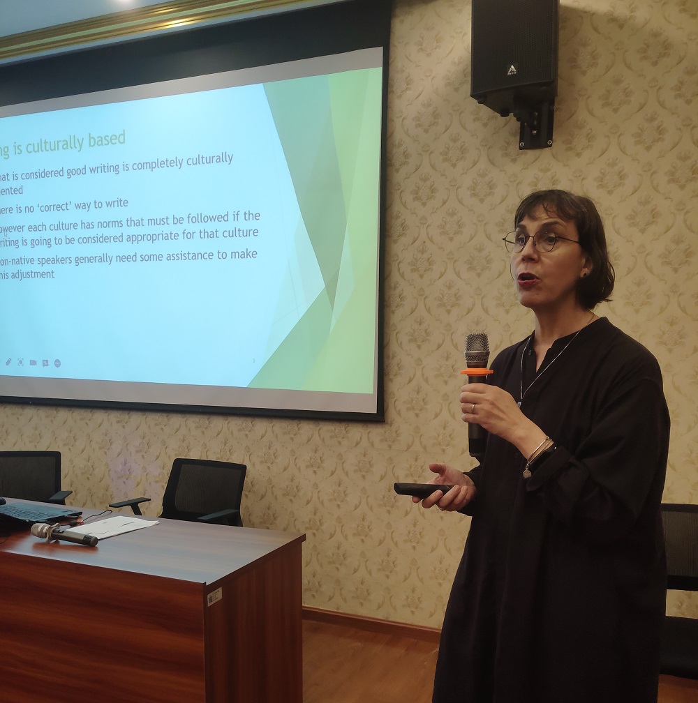 在讲座中,Joy老师为大家厘清了学术英语的基本概念,引导大家分辨何为学术英语,何为非学术英语,她强调了英语语境下的学术英语的基本特征和所需遵循的基本原则和规则,并运用生动鲜活的实例进行分析。