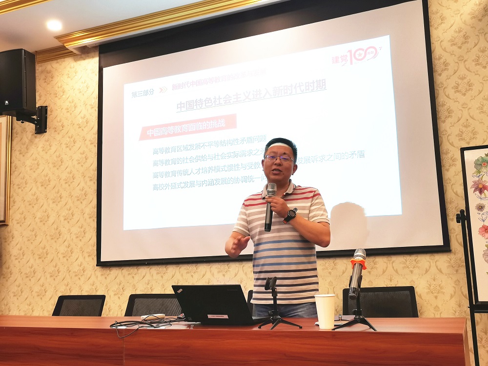 本次党课主题围绕中国共产党领导的高等教育展开。俞老师将本次主题分成三个模块,分别是中国共产党领导高等教育的历史轨迹、中国共产党领导的高等教育优势和新时代中国共产党领导的高等教育改革和发展。通过讲解,同学们对我国高等教育的发展历程有了更深层次的认识。最后俞老师还鼓励大家在学好自身专业知识的基础上,加强对个人核心竞争能力的培养,包括综合素质能力和团队合作能力。党课结束后,俞老师对学生党员的提问做了耐心细致的解答。
