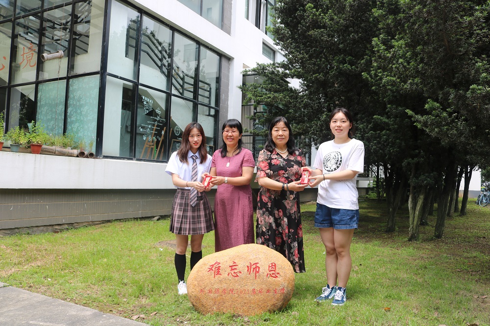 6月17日上午,外国语学院罗茜茜、王雨露、张喆、李钿钿、武文斌、郑佩航、陈天娇等同学代表2021届全体毕业生将一块刻有“难忘师恩”四字的溪石赠予了学院,表达毕业生对母校四年培育的感激和对学院老师的眷恋与不舍。学院全体党政领导班子、教师代表和辅导员等参加了赠送仪式。