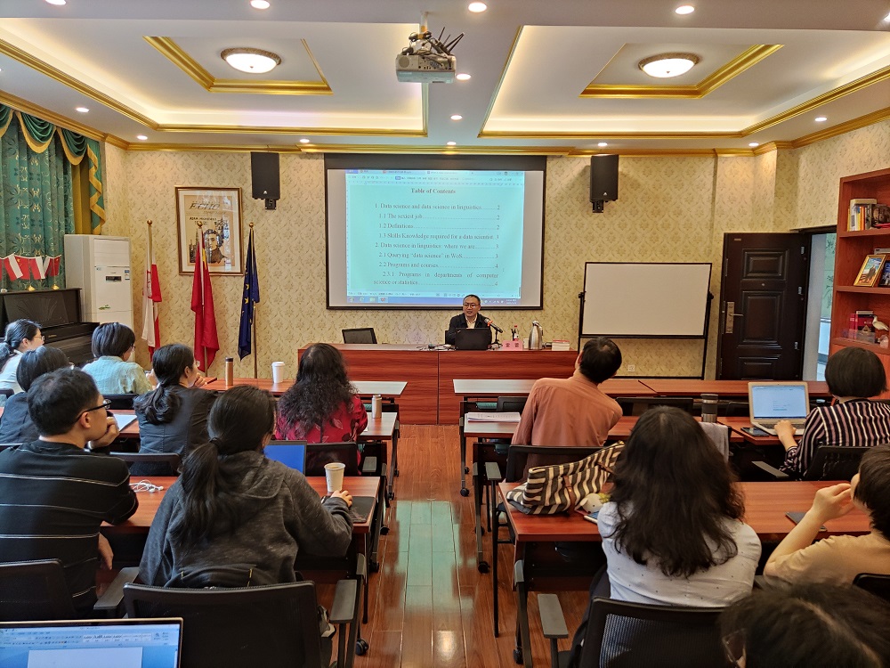 下午1:30,雷蕾教授做了题为“数据科学视域下的语言学研究”学术讲座,本次讲座是随园讲坛第51期,会议由学院应用语言学研究所所长助理吴丹苹博士主持。