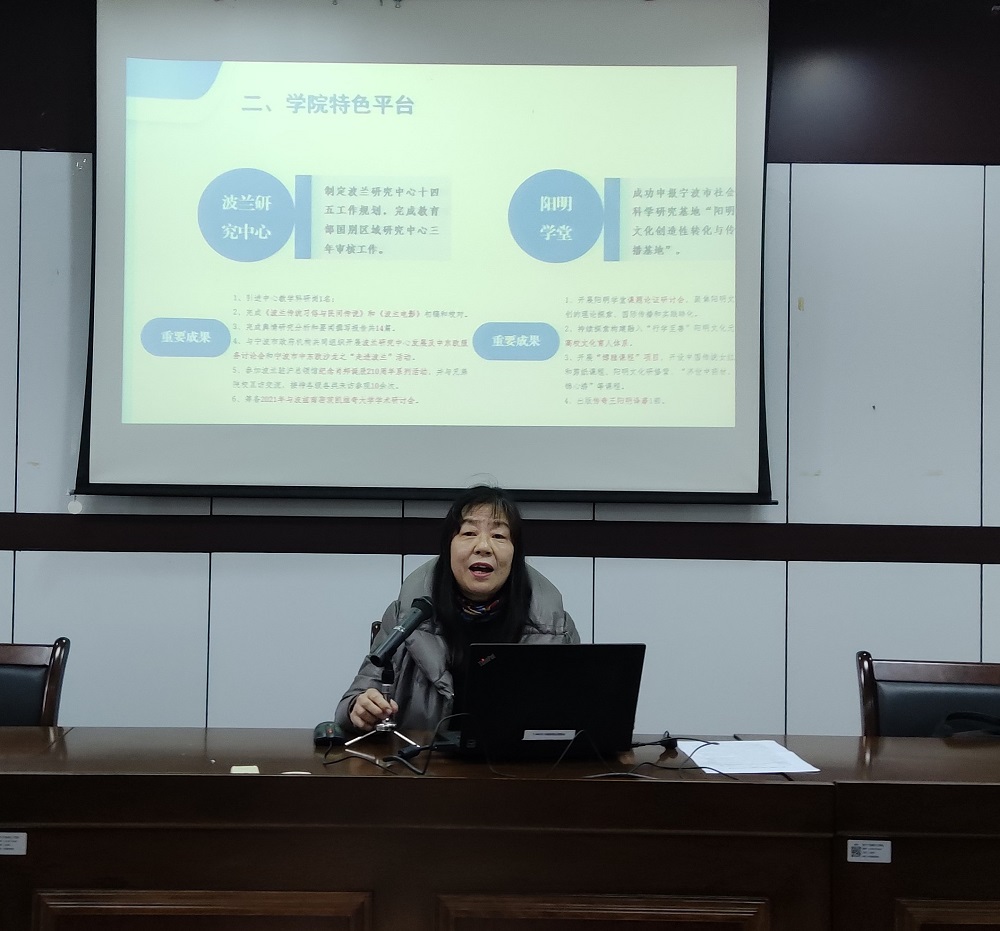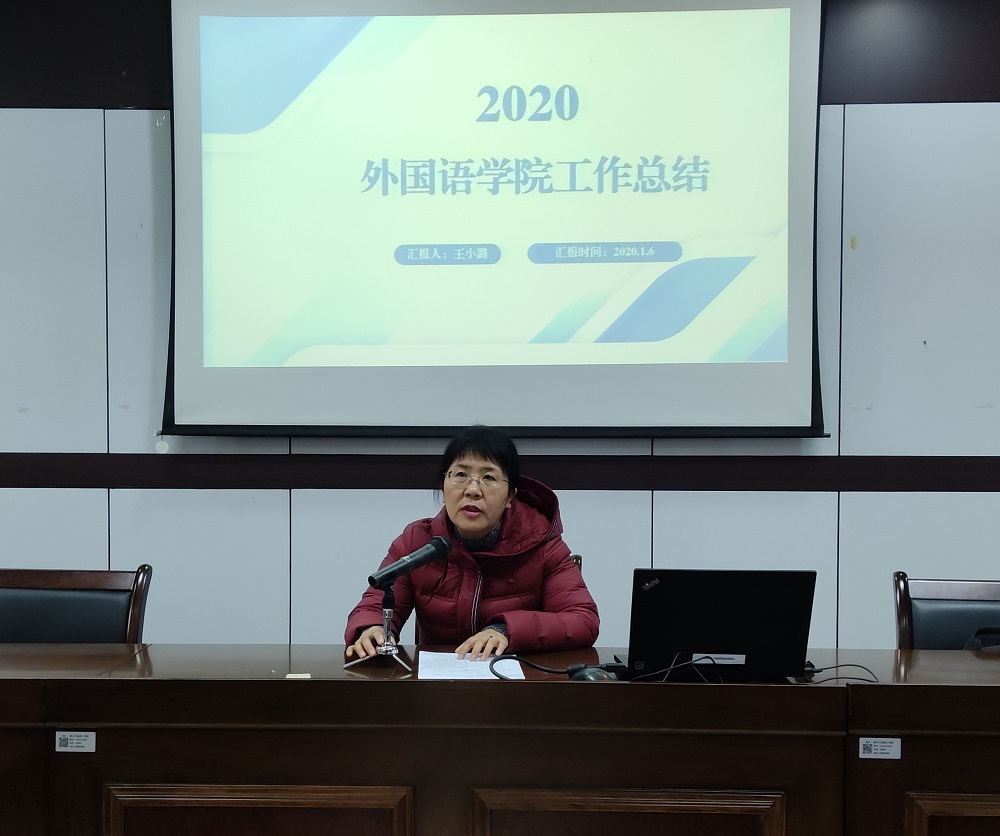 学院院长王小潞代表学院班子做工作总结,她以廉政和班子建设、学院特色工作、业绩与创新三块内容,详细阐述了2020年度外国语学院在政治素养、教学、科研、师资队伍建设、平台合作、学生工作、招生就业等方面的工作成效。同时也对本年度存在的问题和不足进行反思,并提出改进设想。她表示,希望全体教职工在2021年能够继续齐心协力,共同推进学院各项工作的高效快速发展。