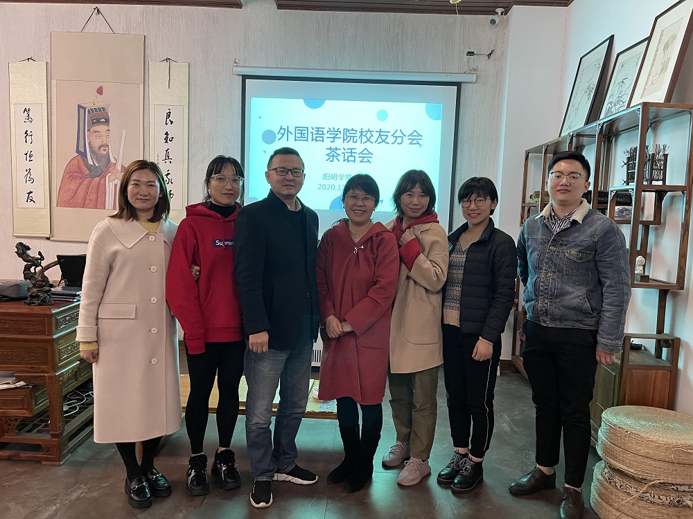 12月12日下午,外国语学院校友分会茶话会在阳明学堂举行。学院党委副书记(主持工作)、副院长傅晓宇,副院长蔡亮,副院长周汶,党委副书记任凯,学校校友办谢龙胜,学院校友分会副会长何宁、王银萍,秘书长芦美丽,副秘书长朱颖、理事沈超群参加了此次座谈交流。活动由何宁主持。