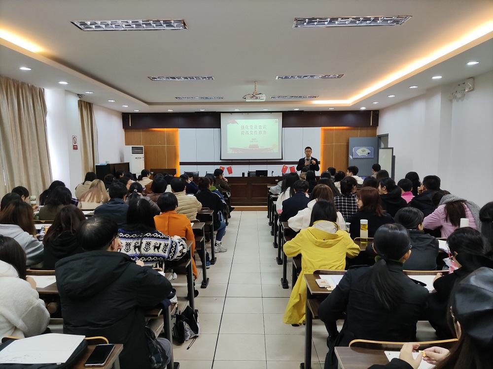11月27日中午,外国语学院在SC405召开党员大会,开展书记讲党课活动。学院党委副书记傅晓宇作《强化党员意识,提高党性修养》专题党课汇报,学院全体师生党员参加活动。