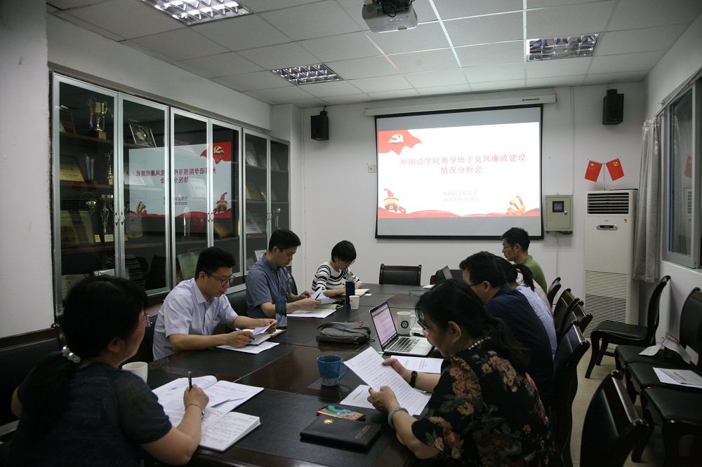5月29日上午,外国语学院在SC403会议室召开从严治党专题学习交流会。学院领导班子、党委委员、纪委委员参加。会议由学院党委书记傅晓宇老师主持。