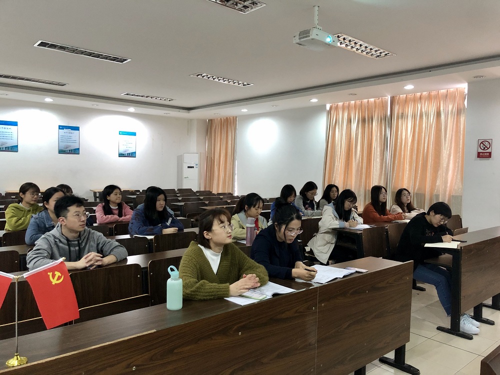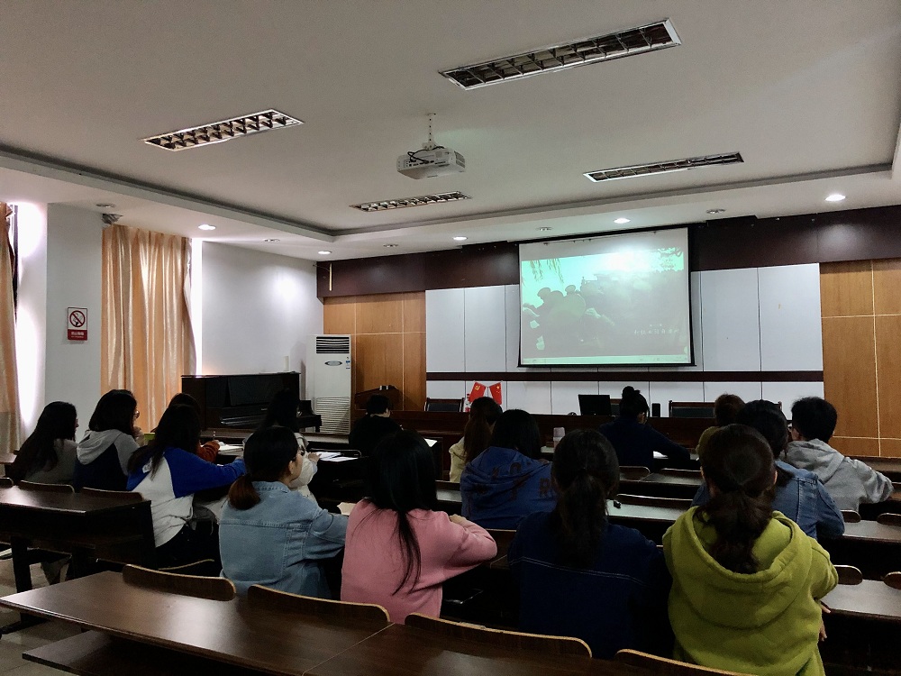 2019年11月13日下午,外国语学院学生第一、第二党支部全体党员在sc405观看《打铁还需自身硬》警示教育片。