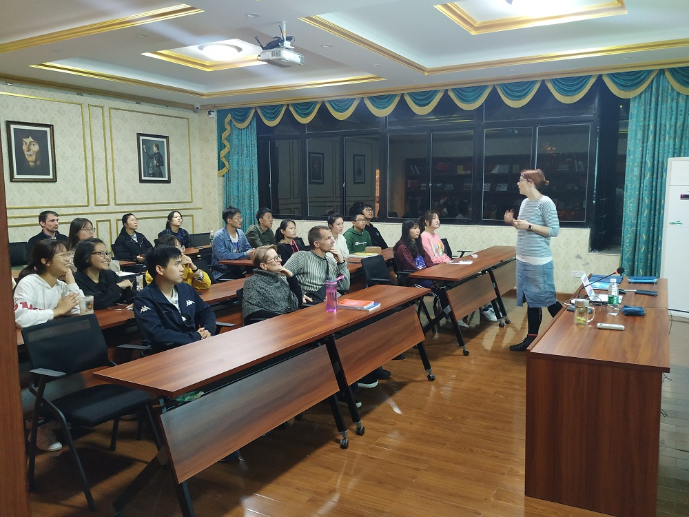 11月6日晚,由外国语学院外籍教师克里斯缇娜博士主讲的“语言真奇妙”系列工作坊在SC106波兰研究中心举行,20多位来自不同专业的同学参加了此次活动。