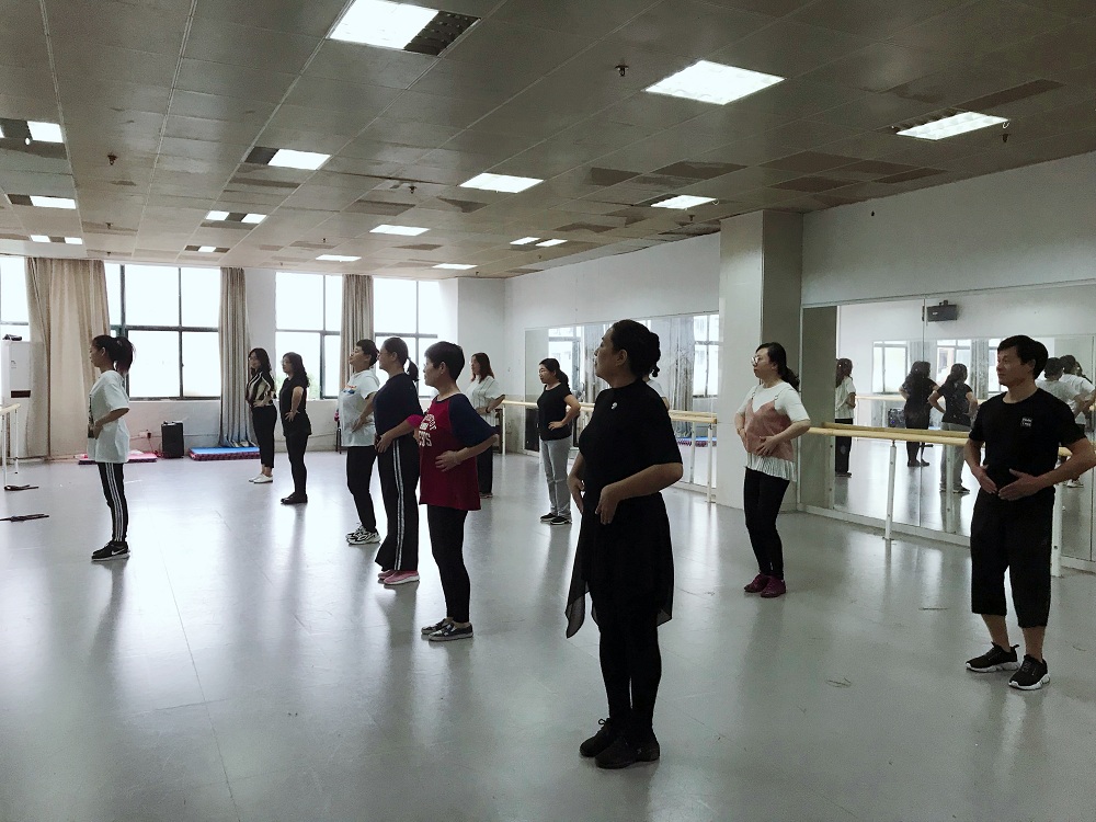 2019年10月9日周三下午,外国语学院分工会教职工秋季有氧韵律操培训活动在新食堂三楼317形体房如期开班。该活动每周一次,参加培训的教职工多达20余人。