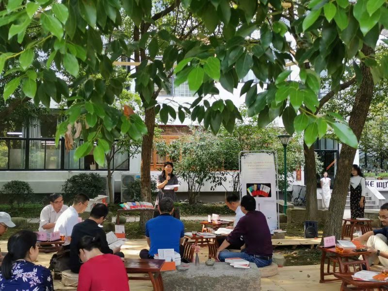 随园论道的第二阶段是学者讲学,此次活动邀请宁波大学教授兼宁波文化研究会会长张如安讲话,张教授表示他在树下讲学尚是第一次,并称赞这次的新书发布会及传统文化研讨会的形式和板块。讲话最后他更是为大家吟唱了辛弃疾的词作;土建学院范俊杰教授以“木下之交”,阐述了它的含义,重现古代讲学,过往行人与树下之人交流和分享;传媒学院教授兼宁波文化研究会副会长的陈雪军老师,从自己与阳明的渊源与学脉谈起,认为阳明思想不仅仅只是人们口中的“知行合一”、“致良知”,而且更有“求是”精神;浙江省社科院副研究院研究员兼浙江国际阳明学研究中心秘书长张宏敏在发言中提出人人心中有阳明,他分享去广西阳明洞探索的经历,告诉我们行事应怀揣一颗诚心;余姚市历史文化名城研究会副会长谢建龙讲述了自己祖族与王明阳的“密切”关系,还给大家带来了正宗而柔软的余姚姚剧。《天一文苑》主编黄文杰认为这次活动提高了大学生课外活动的深度和广度,并赞赏了其对传统文化的意义。商学院副教授余志伟老师也表达了“用声音叙事”系列活动给大学生社会实践的重要意义。