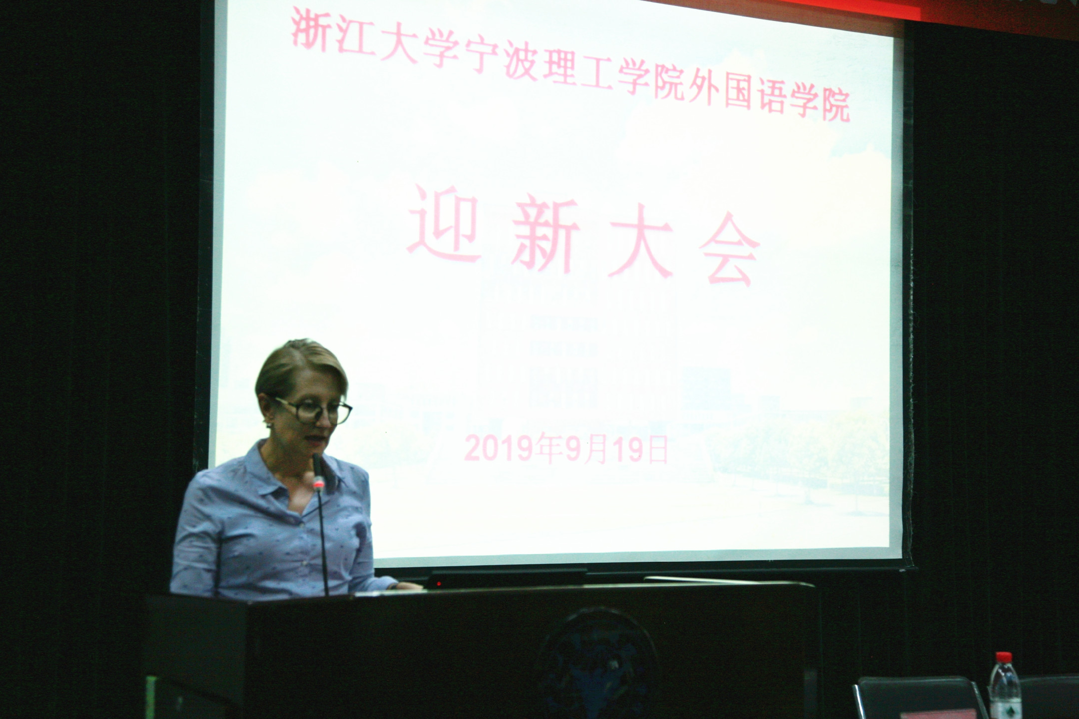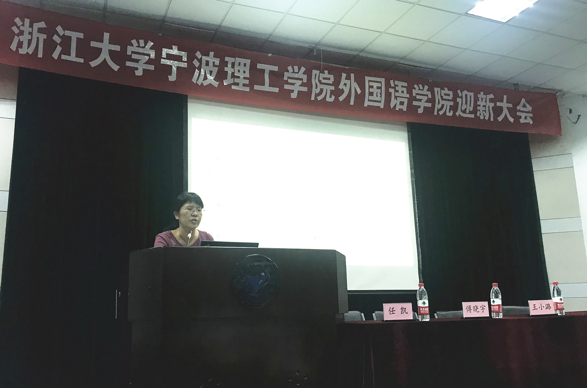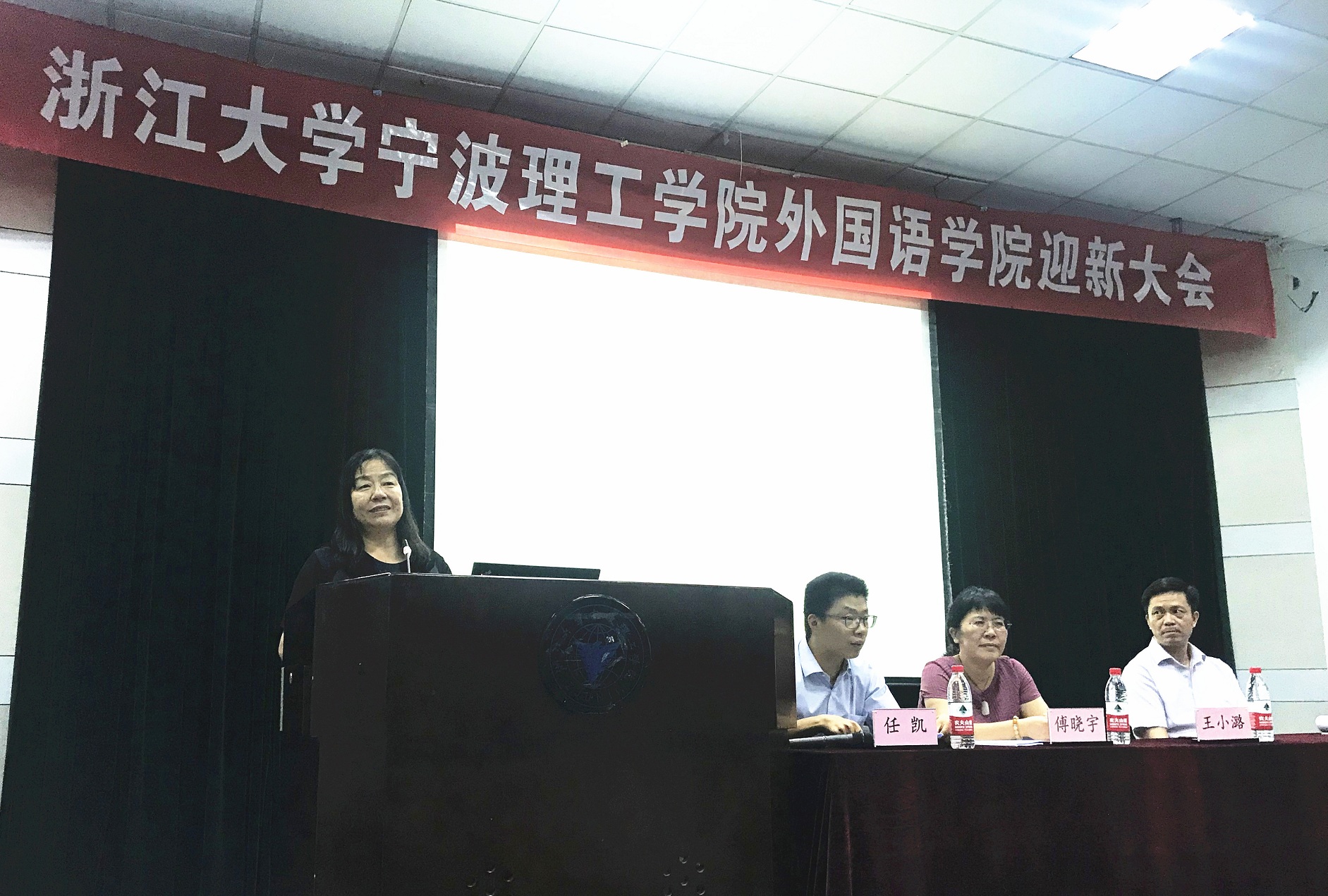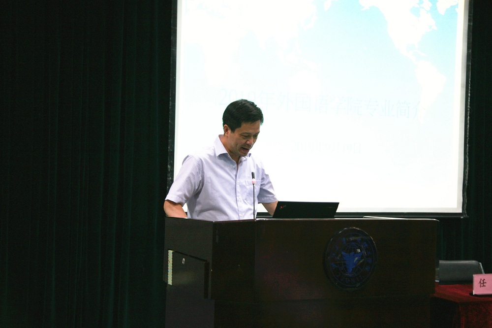 9月19日晚,外国语学院在NF103教室召开迎新大会。院长王小潞、党委副书记、副院长傅晓宇、副院长周汶、党委副书记任凯、各研究所、专业负责人、教师代表、党政办学工办全体老师、2019级班导师及全体新生参加本次大会。会议由任凯老师担任中文主持,英语172班赵彦冰同学担任英语主持。