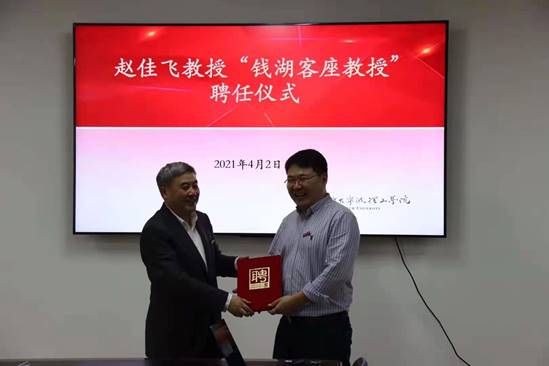 4月2日下午,机电与能源工程学院在NA408会议室举行赵佳飞教授钱湖客座教授聘任仪式。副校长章献民致欢迎词,为赵佳飞教授颁发聘任证书并佩戴校徽,人事处副处长南月余介绍赵佳飞教授的基本情况,学院党委书记童微星主持聘任仪式。
