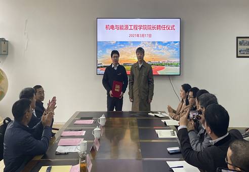 3月17日上午,机能学院院长聘任仪式在NA408会议室举行。浙江大学求是特聘教授,博士生导师,卓越青年科学基金获得者吴大转受聘为机电与能源工程学院院长。学校党委书记胡征宇讲话,并为吴大转教授颁发聘任证书、佩戴校徽。党委组织部部长周树红宣读聘任文件,人事处处长王高合主持聘任仪式。