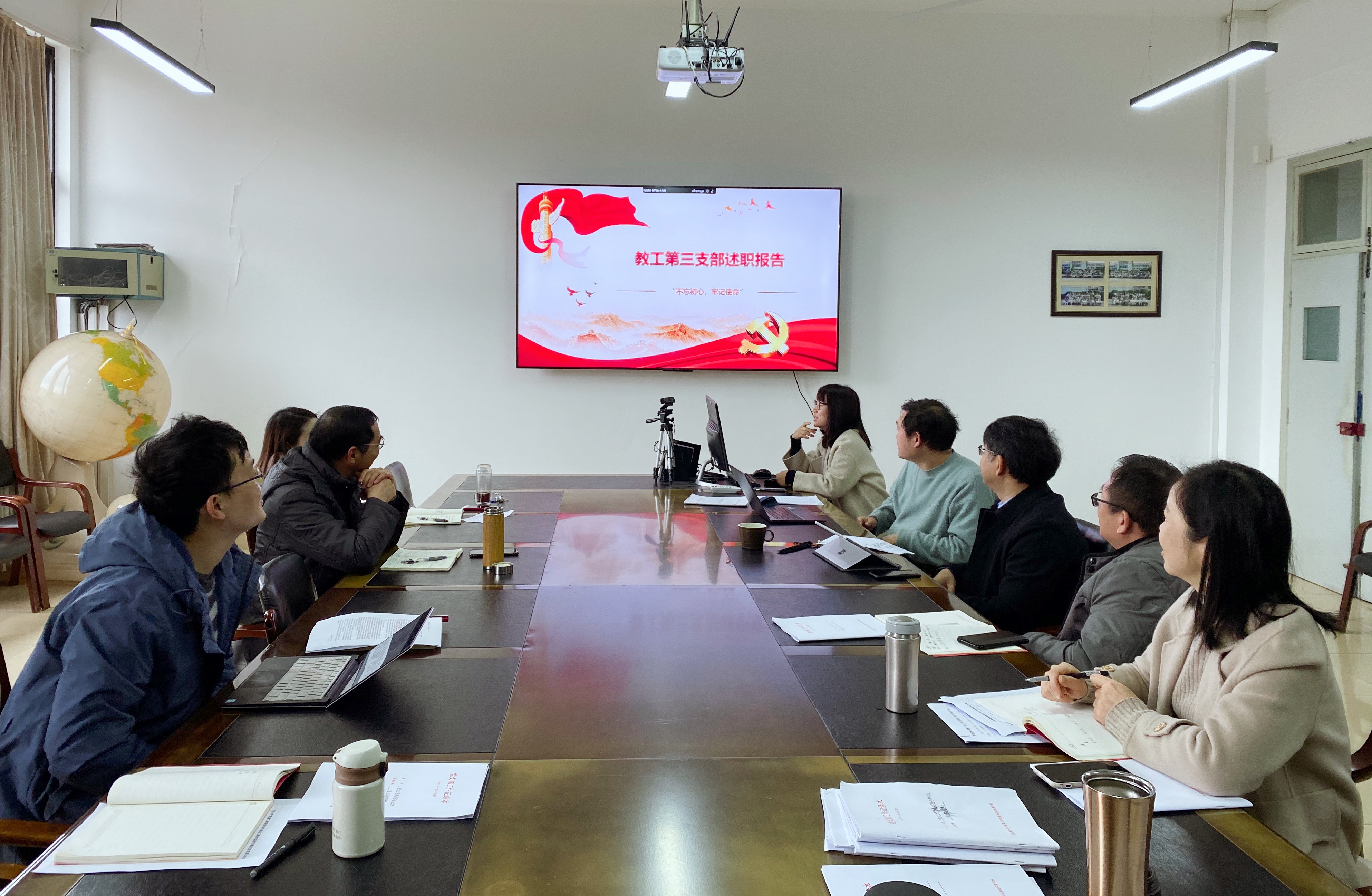 五个教工党支部书记、四个学生党支部书记依次进行年度工作述职汇报,对支部存在的问题进行深入剖析,并重点介绍了下一年度各党支部的工作计划。与会党员进行评议打分。