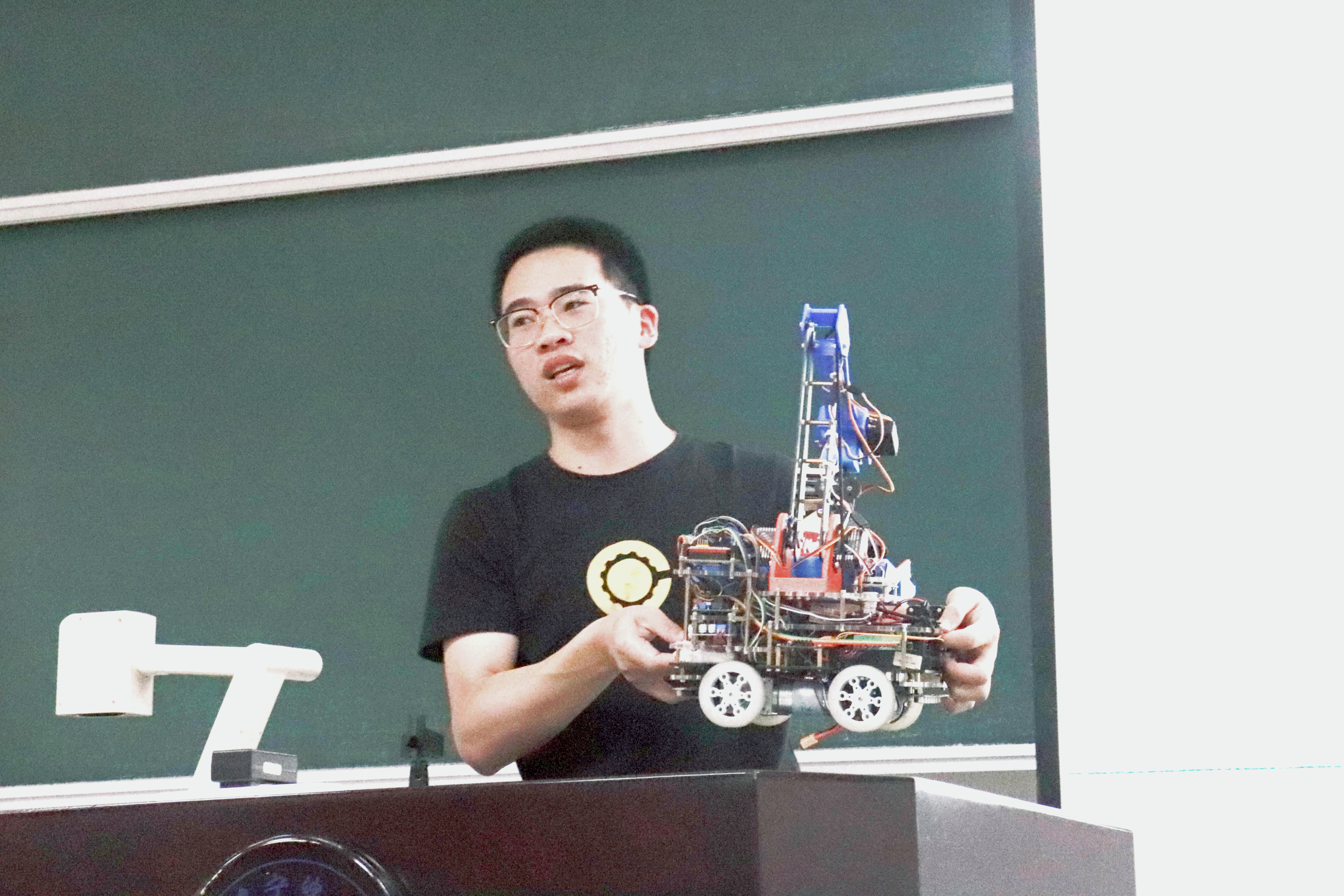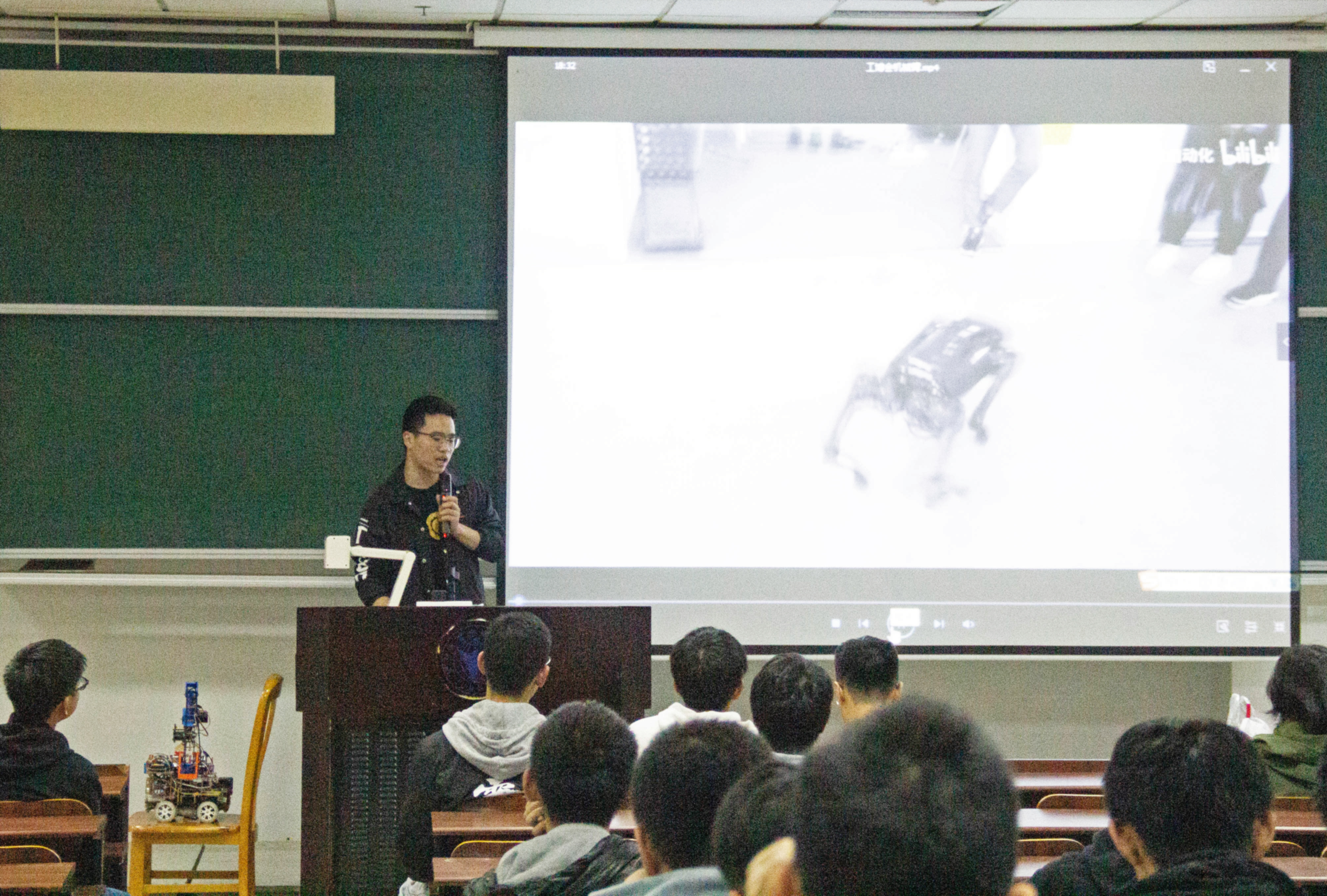 本次活动的主讲人是NIT STEM 社团的学长白志圆同学。白志圆从未来性培训角度切入,从中国国际工业博览会中的机械狗的展览引入本次主题。机械狗通过视觉系统识别方位,能在工业生产线上工作,最为突出的是上海节卡机械臂,工业移动机器人,它可以代替人工在汽车生产线上工作。关于职业生活,他提醒同学们要学会自我定位,积累专业知识与比赛经验,提升个人竞争力。学科竞赛可以锻炼人的智力、意志,培养该方面的兴趣和素养,有利于同学们学会自主思考、逻辑思维能力,锻炼独立解决问题的能力,为今后发展打下基础,希望同学们可以积极参与,不要在最好的年华选择安逸。主讲人最后送给了同学们一句话:工程必须建立在理论上。