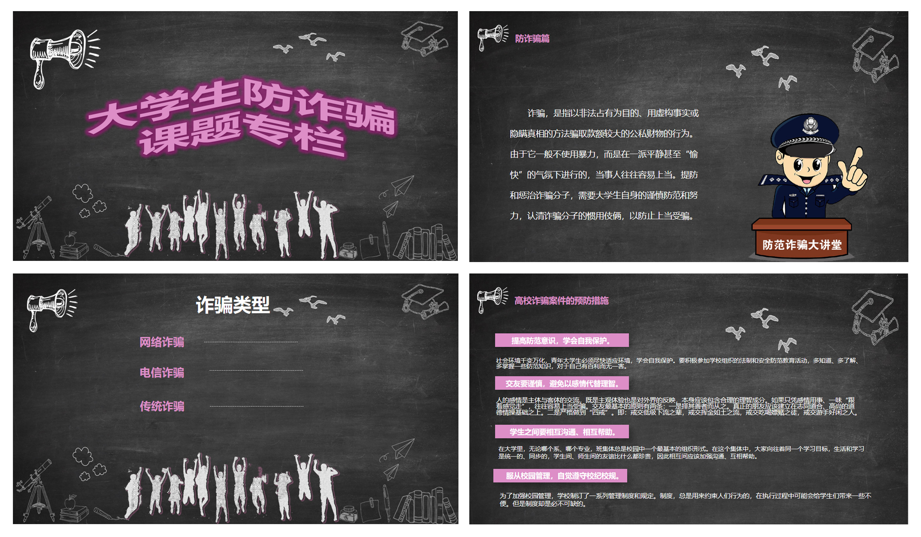 诈骗,是指以非法占有为目的、用虚构事实或隐瞒真相的方法骗取款额较大的公私财物的行为。由于它一般不使用暴力,而是在一派平静甚至“愉快”的气氛下进行的,当事人往往容易上当。在这次课上,沈家辉同学以PPT的形式向同学讲述。首先他例举了几种常见的诈骗类型,有网络诈骗、电信诈骗、传统诈骗等,并分别讲述了他们各自的特点。每种诈骗类型都有其特定的特点,明白了这一点的同学们才能防止诈骗事件发生在自己身上。每种诈骗的讲述中都有真实的案例作为例子,更加鲜明地表明这些诈骗随时都可能发生在自己身边,希望大家可以提高警惕。