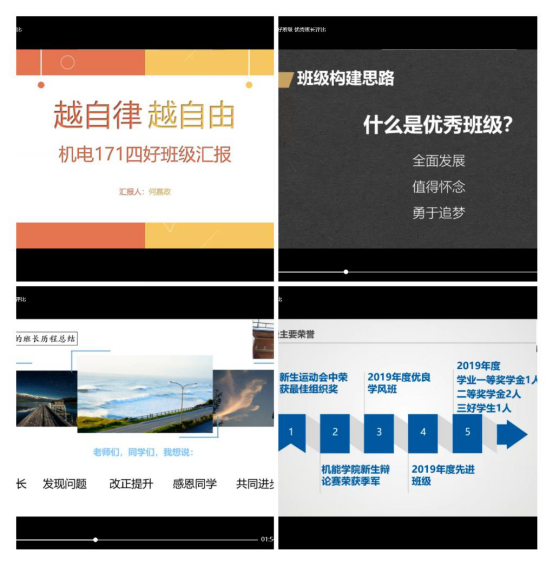会议开始,首先由主持人为大家宣布了入选的班级和评选细则,经过前期的量化考核,各班在四六级通过率、课程成绩优良率、班级到课率、班级活动开展等方面进行“硬核比拼”,共有12个班级脱颖而出进入本次“四好班级”现场评选环节。在评选展示环节,各班通过精心制作的ppt来展示班级建设中的特色与亮点,各班班长也从创建优良学风班所取得的成果以及工作的思考等方面向大家做了精彩展示。大会最后,由学院团委书记仇芳老师进行总结讲话,仇老师对各班工作进行了一一点评,肯定了班长在优良学风建设方面和班级工作方面取得的成绩,尤其是在疫情期间各班响应“停课不停学”的号召,通过各类线上“花式打卡”活动,进一步激发了班级优良学风创建的活力,希望“优良学风人人共建,学风优良人人共享”的理念深植于每一位同学心里。会议结束后由各班同学参与投票,最终评出“四好班级”、“优秀班长”各10名。