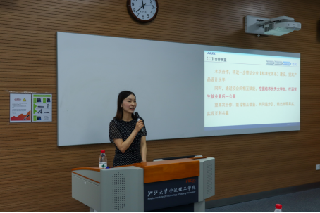 机能学院党委副书记王晶老师代表学院对奥克斯嘉宾的到来表示欢迎,对企业对机能学生的指导和培养表示感谢,她指出,新生发展导师以科研项目育人,培养学生科研创新意识,引导学生将专业理论应用于实践,构建以导师为主导,高年级本科生辅导低年级本科生的纵向链式学习科研团队,实现人才培养“传帮带”的良性发展,这样的的人才培养模式正是新生发展导师制的最好实践。希望今后进一步加强与企业合作,探索双导师人才培养新模式,深化产教融合,协同育人,探索订单化培养打通就业最后一公里。同时也希望同学们珍惜实践机会,主动向企业导师学习,努力提高专业技能,提升核心竞争力。