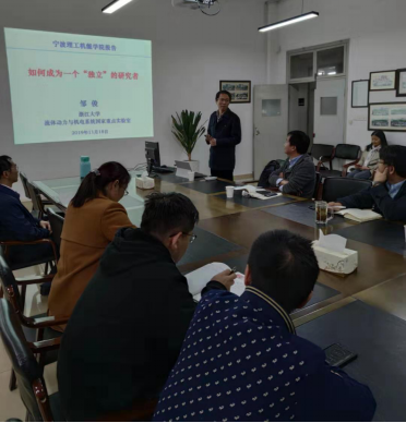 11月18日下午,机电与能源学院邀请浙江大学机械工程学院院长助理、浙江大学机器人与智能装备科技联盟秘书长邹俊教授在学院会议室为老师们进行国家自然科学基金申请辅导讲座。