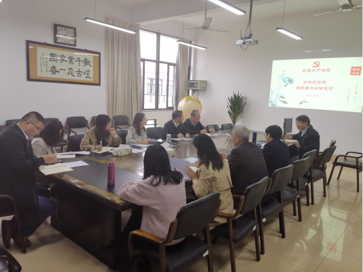 首先,胡长兴副院长以《学党纪党规--增强廉洁自律意识》为题,为大家带来了一堂别开生面的党课。他指出“腐败是我们党面临的最大威胁。”党的十九大报告阐述了对反腐问题的清醒认识,指出只有以反腐败永远在路上的坚韧和执着,深化标本兼治,保证干部清正、政府清廉、政治清明,才能跳出历史周期率,确保党和国家长治久安。他从党风廉政建设的重要性,增强廉洁自律意识、促党风廉政建设,从身边事做起做好廉洁自律等三个方面进行了讲述,深入浅出地分析了党风廉政建设所面临的各种复杂问题,并结合自己分管的科研工作进行了廉政分析,强调科研经费使用管理、设备采购等工作环节中的廉政自律和党风监督,层次清晰,内容丰富,意味深长。